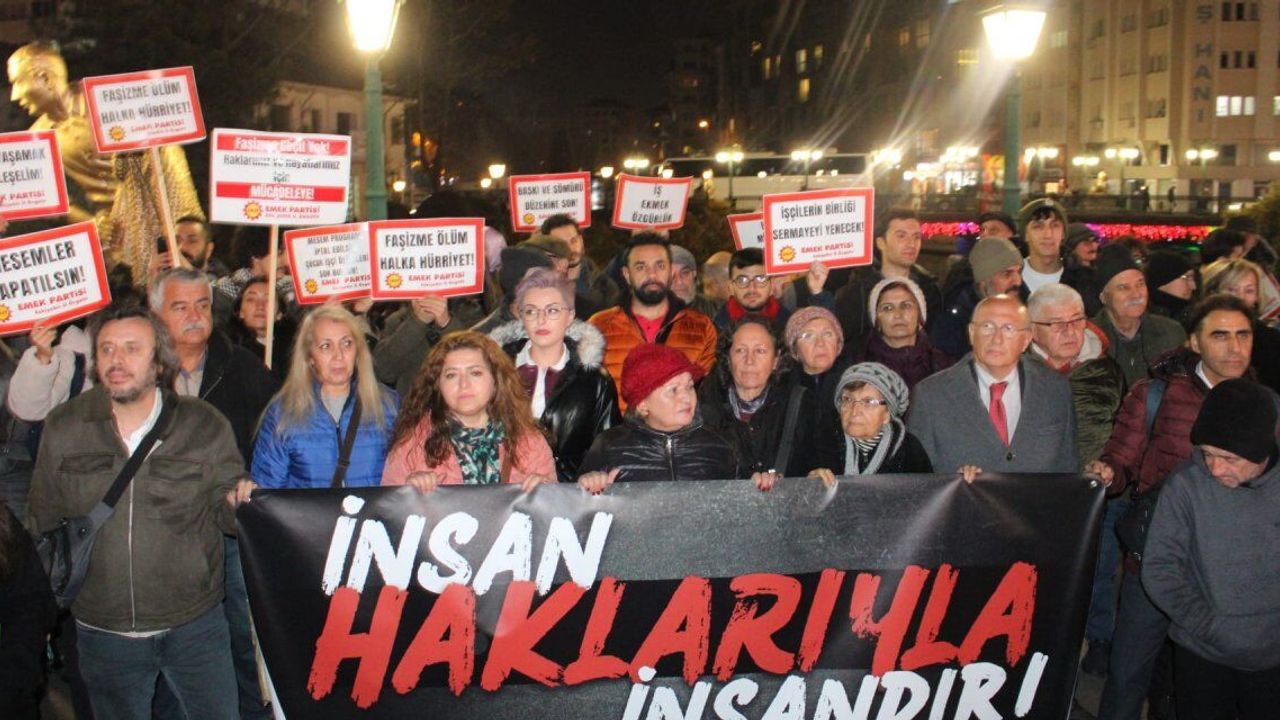 10 Aralık Dünya İnsan Hakları Günü kapsamında yürüyüş düzenleyen Eskişehir Emek ve Demokrasi Platformu, Ulus Anıtı’ndan Köprübaşı’na kadar sloganlar eşliğinde yürüdü. Platform üyesi Sibel Gündüz Koca, hak ihlallerine karşı ortak mücadele çağrısı yaptı.