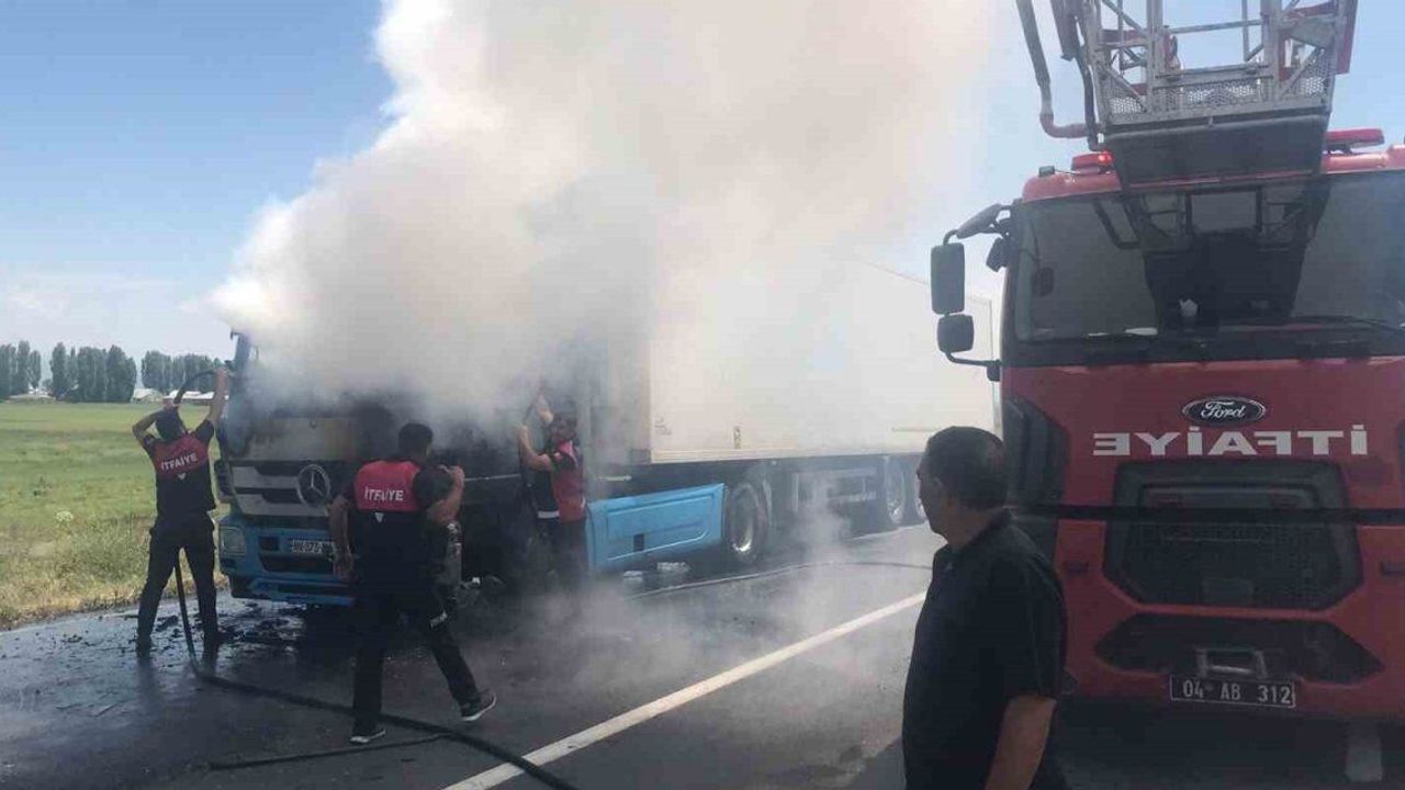 Erzurum-Ağrı karayolunda Hamdi S. idaresindeki tırın ön kısmı henüz belirlenemeyen nedenle alev aldı. Durumu fark eden sürücü, aracı yol kenarına çekerek itfaiyeden yardım istedi. Kısa sürede olay yerine gelen Ağrı Belediyesi itfaiye ekipleri, yangına müdahale ederek söndürdü. Tırda maddi hasar oluştu.