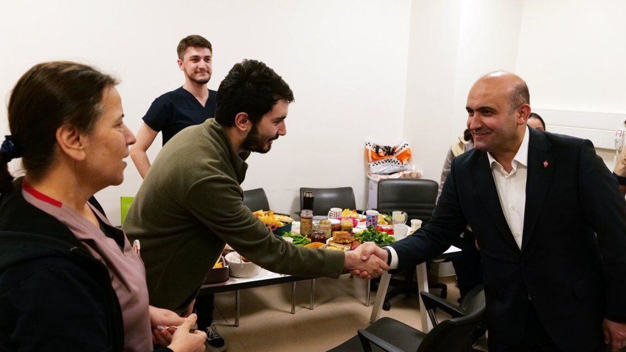 İlk ziyaretini Eskişehir-Ankara karayolunda görevleri başında olan güvenlik güçlerine gerçekleştiren Albayrak ve beraberindekiler, akabinde Eskişehir Şehir Hastanesi’ni ziyaret etti. Hastanede tedavi gören vatandaşlara geçmiş olsun dileklerini ileten Albayrak, “İl Yönetim Kurulu arkadaşlarımız ile birlikte bayram dolayısıyla mesai başındaki emniyet güçlerimizi ve Eskişehir Şehir Hastanesi’nde çalışan hekim ve sağlık çalışanlarımızı ziyaret ettik, görevlerinde kolaylıklar diledik. Özellikle pandemi sürecinde yaptıkları fedakârlıkları ayrı bir düşündükçe gerçekten hakları ödenmez. Bu vesile ile ülkemizin huzuru, toplumumuzun sağlığı için görev başında olan tüm kardeşlerimin Ramazan Bayramı’nı bir kez daha tebrik ediyorum. Hep birlikte sağlık ve huzur dolu nice bayramlara inşallah” dedi.