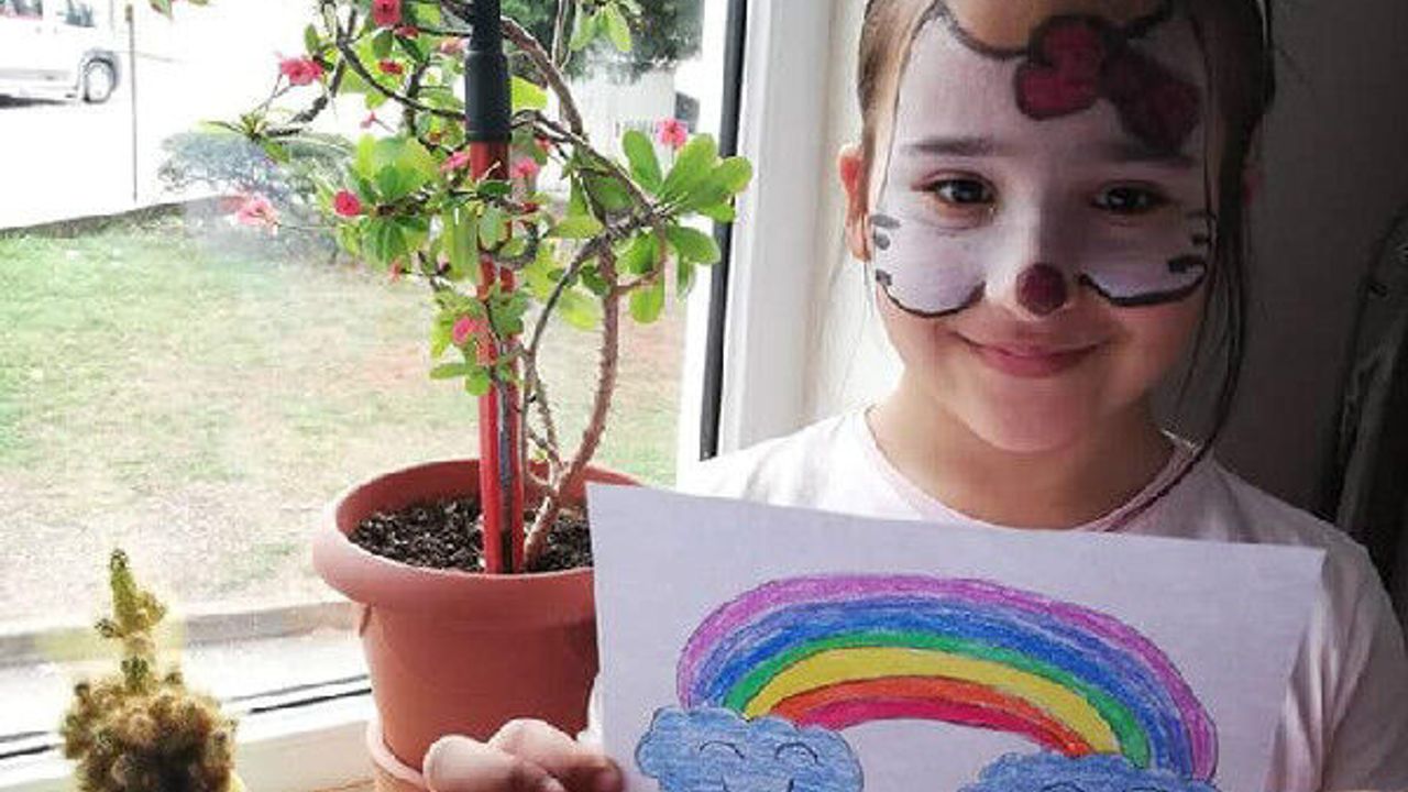 Minikler, evde kendi elleriyle çizdikleri gökkuşaklarıyla büyüklere umut oluyor.