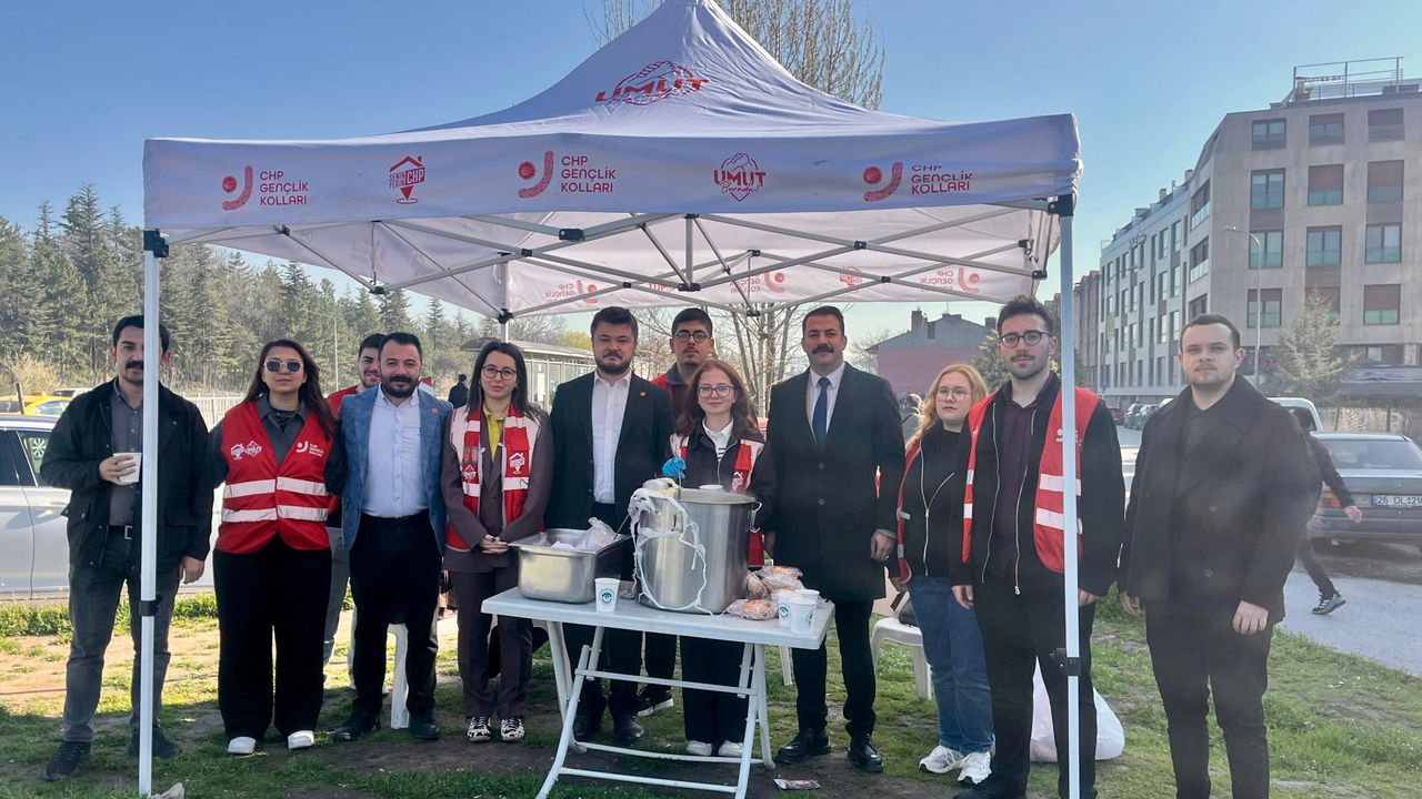Basın açıklamasının ardından CHP İl Gençlik Kolları üyeleri, “kurtlu yemek” iddialarına karşılık olarak üniversite önünde kurdukları stantta vize haftasındaki öğrencilere çorba dağıttı.
