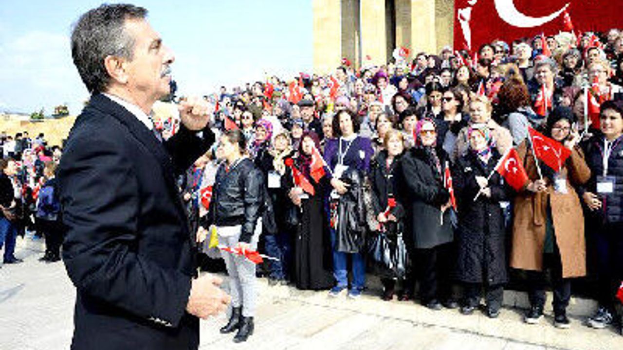 Başkan Ataç ve kadınlar daha sonra Anıtkabir önünde hatıra fotoğrafı çektirdi. Tepebaşı kafilesi burada hep bir ağızdan İzmir Marşı’nı söylerken, Anıtkabir’e akın eden vatandaşlar da marşa alkışlar ile eşlik etti. Burada bir değerlendirmede bulunan Başkan Ataç, Atatürk’e yönelik saldırılara rağmen Atatürk sevgisinin katlanarak büyüdüğüne dikkat çekti ve “Ata’mızı sadece anmamız yetmez, O’nun önerdiği çağdaş yolda yürümemiz ve ülkemizi daha farklı bir noktaya getirmemiz lazım. Tepebaşı büyük bir ailedir. Tepebaşı ailesi Ata’sına karşı bugünde görevini yerine getirdi. Gerçekten çok mutluyuz ve huzurluyuz. Burada yaşadığım bir olayı da paylaşmak isterim; Anıtkabir ziyaretimizde şalvarıyla, beyaz örmesiyle bir kadınımız beni çevirdi ve ‘Oğlum ben 75 yaşımdayım. İlk kez Anıtkabir’e geldim. Sana çok minnettarım’ dedi. Şimdi bu kadının duygularına bakın, bir de haddini bilmez sapıkların Atatürk’ün hatırasına saldırarak yaptığı işlere bakın. O açıdan Türk Milleti Ata’sına her zaman sahip çıkacak. Bu saldırılara rağmen ona olan bağımız artarak devam edecek. Bugün; yaşlısı, genci, kadını, erkeği ile buradayız. Kadınlarımız Atatürk’e gerçekten sahip çıkıyorlar. Biliyorlar ki, Ataları onlara ne kadar büyük demokratik haklar sağladı. Dünyanın ileri gelen ülkelerinden onlarca yıl önce seçme ve seçilme haklarını kendilerine Atatürk’ün verdiğini biliyorlar” şeklinde konuştu.