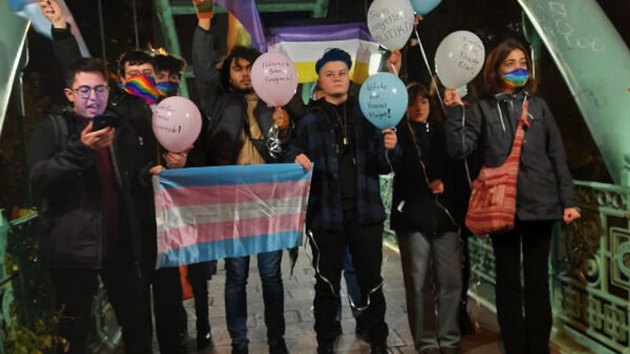 Eskişehir’de PRİDE üyeleri, nefret suçu mağdurları için renkli balonlar ile Porsuk Çayı üzerindeki kemer köprüde toplandı.