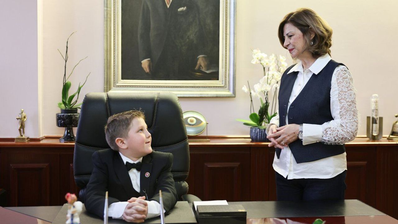 23 Nisan Ulusal Egemenlik ve Çocuk Bayramı ile TBMM'nin 105. açılış yılı kutlamaları çerçevesinde Eskişehir Büyükşehir Belediye Başkanı Ayşe Ünlüce, Meseret İnel İlkokulu 4. sınıf öğrencisi Ege Ersen’i makamında ağırladı.