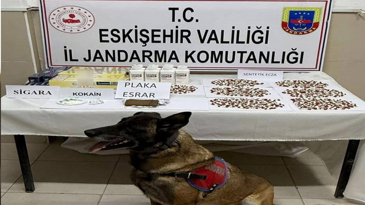 Çifteler İlçesi girişinde bir yolcu otobüsünde 26 Mart 2026 tarihinde ekiplerce yapılan aramada; bin 400 adet uyuşturucu hap, 141,6 gram plaka esrar, 20,8 gram kokain, 109 paket kaçak sigara, 11 bin 350 TL ve 4 bin 325 Euro nakit para ele geçirildi.