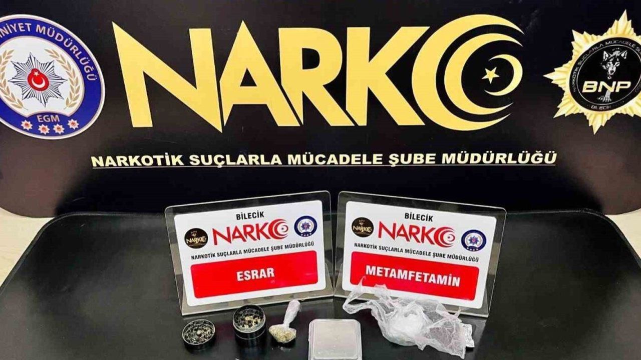 Bilecik Emniyet Müdürlüğü'ne bağlı Narkotik Suçlarla Mücadele Şube Müdürlüğü ekipleri tarafından düzenlenen uyuşturucu operasyonunda, 7,37 gram metamfetamin, 2,38 gram esrar, 1 adet hassas terazi ele geçirildi. Konuyla ilgili 2 şüpheli yakalanarak gözaltına alındı. Şüpheliler hakkında "Kullanmak İçin Uyuşturucu Madde Satın Almak, Kabul Etmek Veya Bulundurmak" suçundan işlem başlatıldığı öğrenildi.