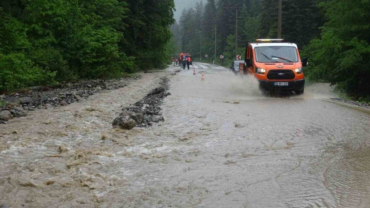 Bolu'da sabah erken saatlerde itibaren etkili olan yağış nedeniyle dereler taştı, yollarda göçükler meydana geldi.