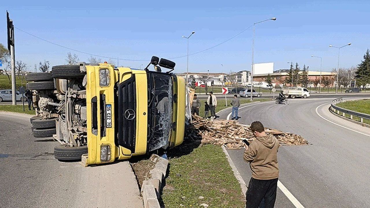 Kaza, saat 15.30 sıralarında Bursa-Ankara kara yolu üzeri İnegöl girişindeki köprülü kavşakta meydana geldi. Bursa'dan gelip İnegöl'e dönüş yapmakta olan Cengiz K. (44) yönetimindeki 35 CZZ 70 plakalı ahşap palet yüklü kamyon, sürücüsünün kontrolünden çıkarak devrildi. Devrilen kamyonun sürücüsü yaralanırken, kamyon dorsesindeki paketler yola saçıldı. Yaralı sürücü kaza yerine sevk edilen Ambulansla İnegöl Devlet Hastanesine kaldırıldı.