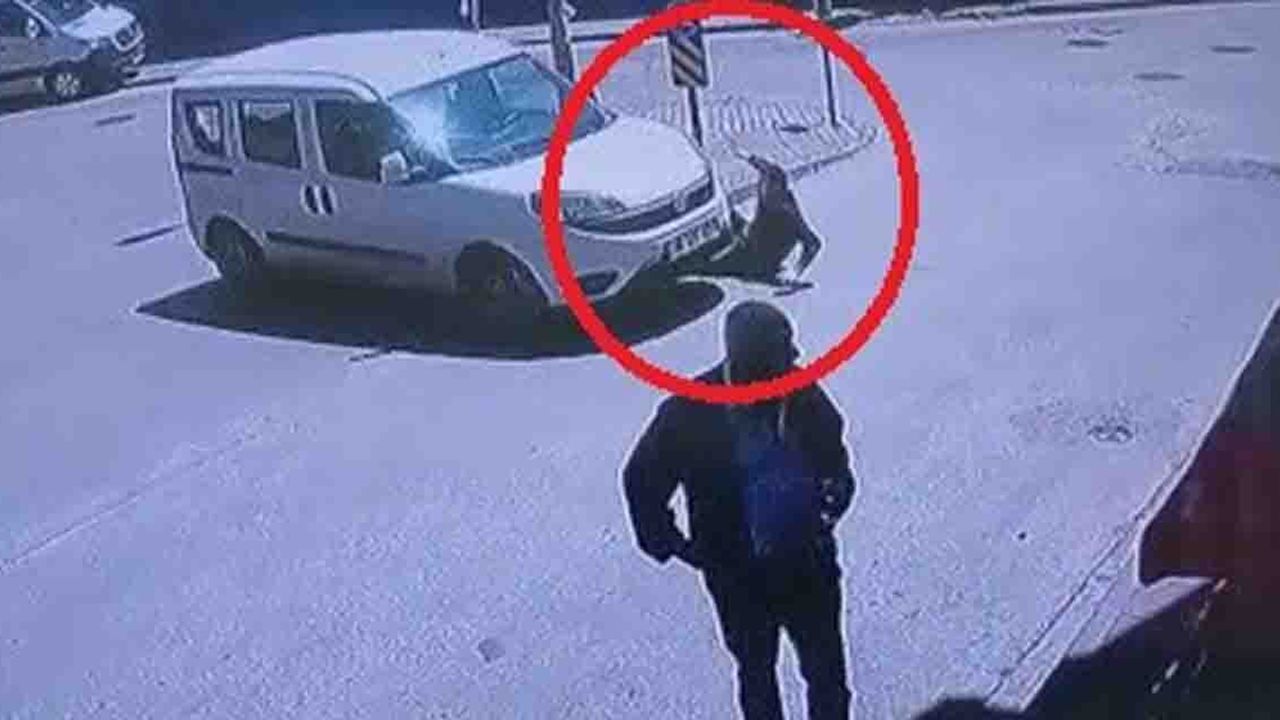 Herkes frene basacağını düşünürken, sürücü gaza basıp otomobilin altında kalan adamın üzerinden geçti. Feci kaza güvenlik kamerasına anbean yansıdı.