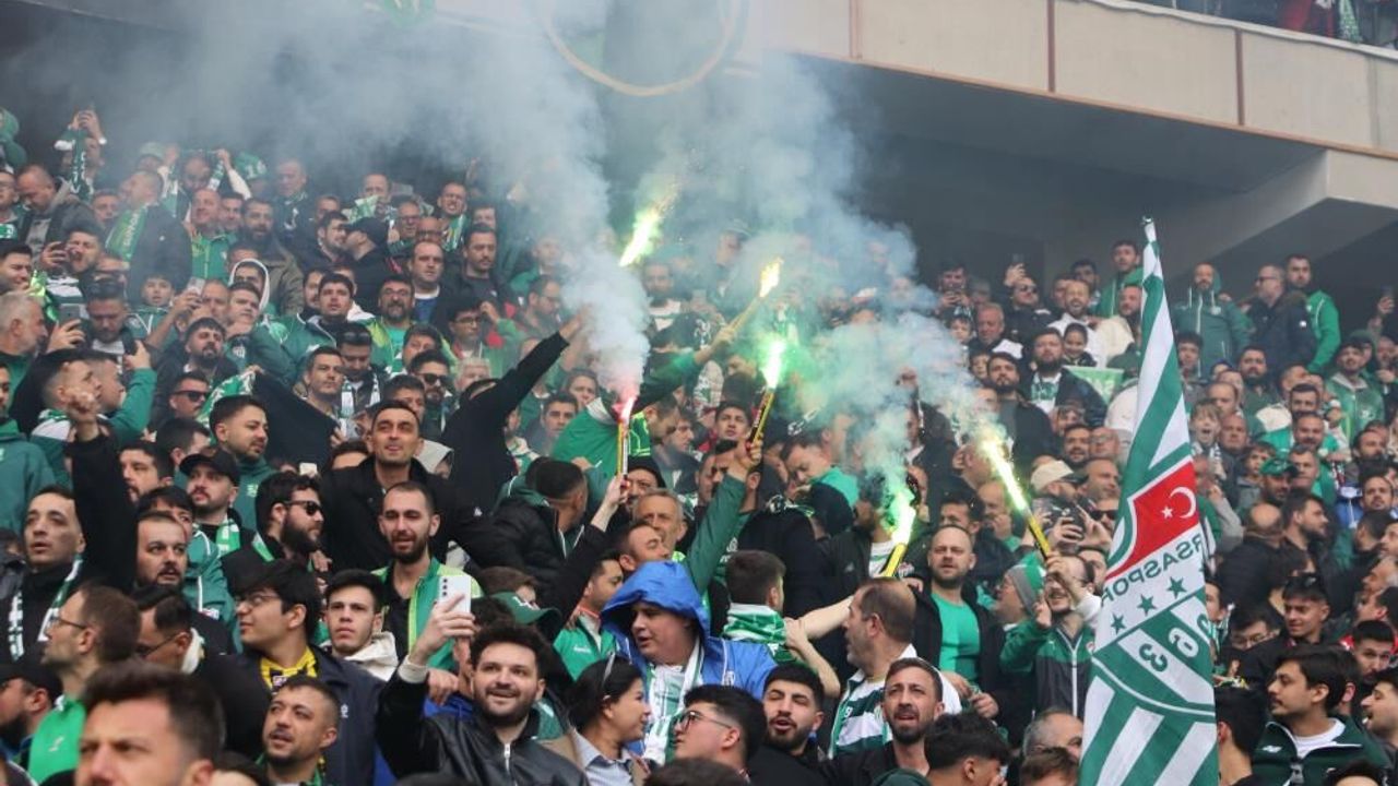 Nesine 2. Lig Kırmızı Grup 32. haftada Ankara Demirspor - Bursaspor karşılaşması, Prof. Dr. Fethi Heper Stadyumu'nda oynanıyor. On binlerce Bursasporlu taraftarın tribünden canlı olarak takip ettiği müsabaka, renkli görüntüler ile ön plana çıkıyor. Eskişehir tribünlerini yeşil-beyaz yapan Bursasporlular, coşkulu tezahüratlarla oyunculara destek sağladı.