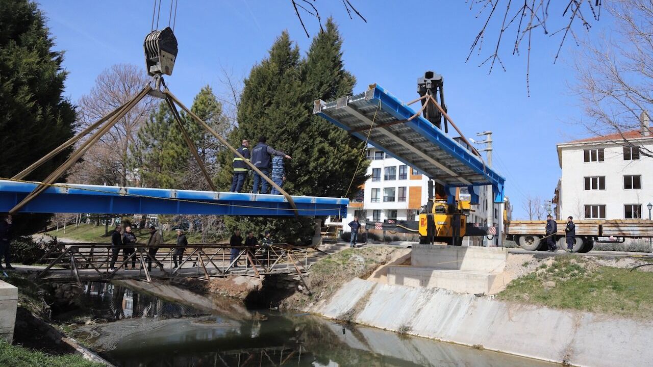 Eskişehir Büyükşehir Belediyesi Fen İşleri Dairesi Başkanlığı ile Park ve Bahçeler Dairesi Başkanlığı ekipleri, geçtiğimiz yıl hizmete açılan ve kısa sürede Eskişehirlilerin uğrak noktalarından biri haline gelen İskele 26’ya giden güzergâhta bulunan mevcut köprünün dar olması ve bölgedeki yoğun yaya trafiğini karşılayamaması nedeniyle yerine daha geniş ve yapısal olarak daha dayanıklı yeni bir köprü inşa ediliyor.
