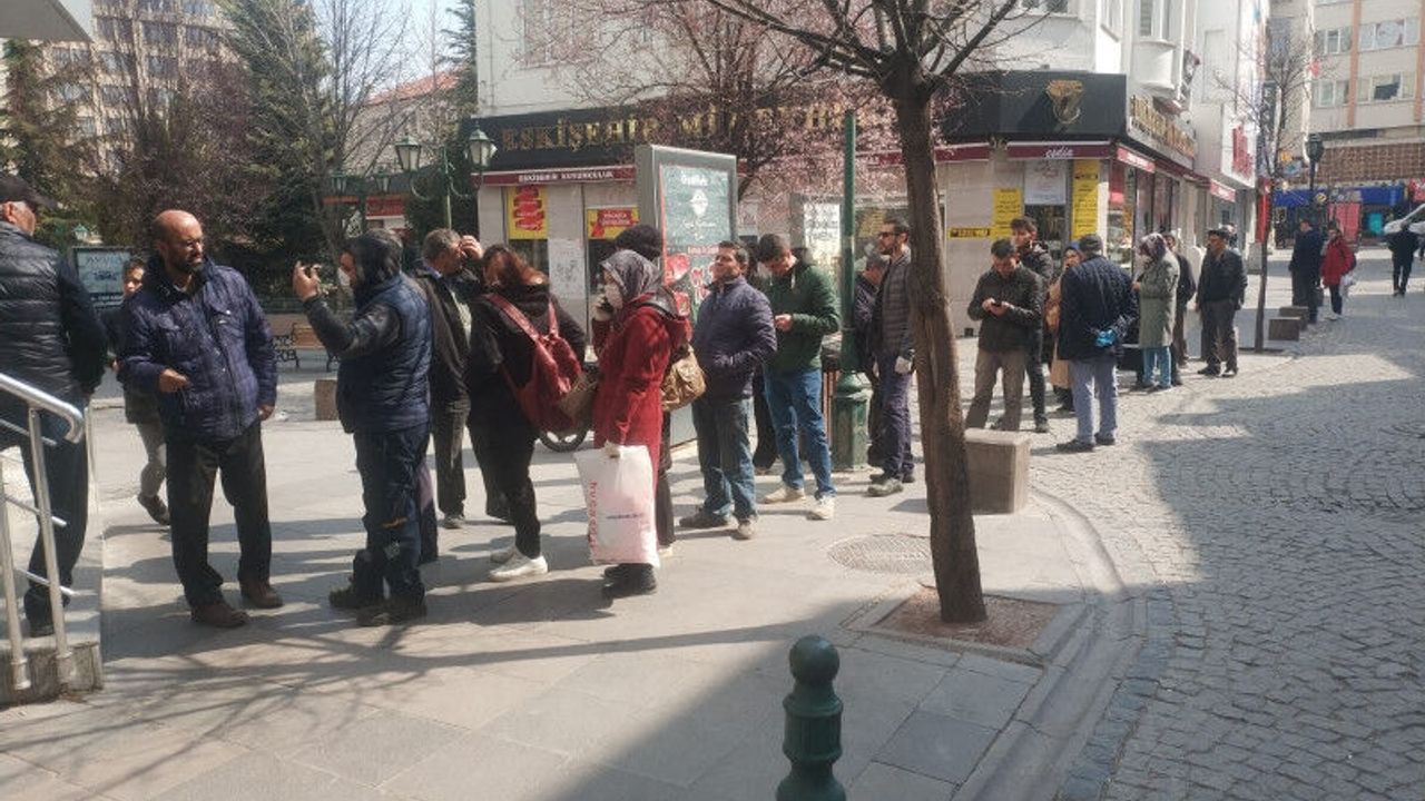çalışma süresi 5 saate düşen bankaların önünde açılışı bekleyen vatandaşlar uzun kuyruklar oluşturdu. Eskişehir'de banka sırası bekleyenlerin arasında yaşlı vatandaşların olması ihtimaline karşın banka yetkilileri 65 yaşın üzerindeki vatandaşlara işlem yapılmayacağını duyurdu.
