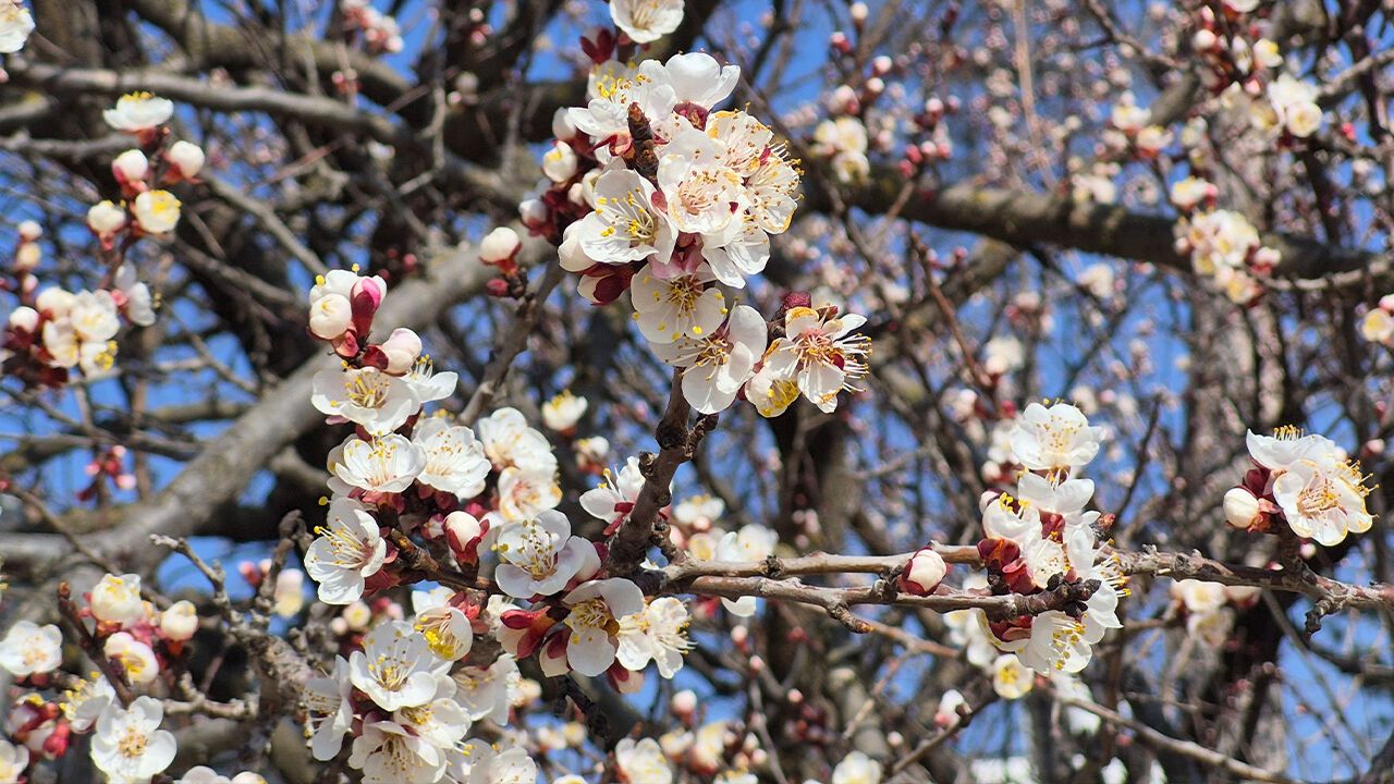 Hava sıcaklıklarının bir süredir mevsim normalleri üzerinde seyrettiği Eskişehir'de kayısı ağaçları çiçek açtı. Baharın müjdecisi olduğu bilinen ağacın beyaz ve pembe tonda olan çiçekleri, güzel manzaralar oluşturdu. Şehrin çehresini değiştiren hoş görüntü, cep telefonu kamerası ile fotoğraflandı.