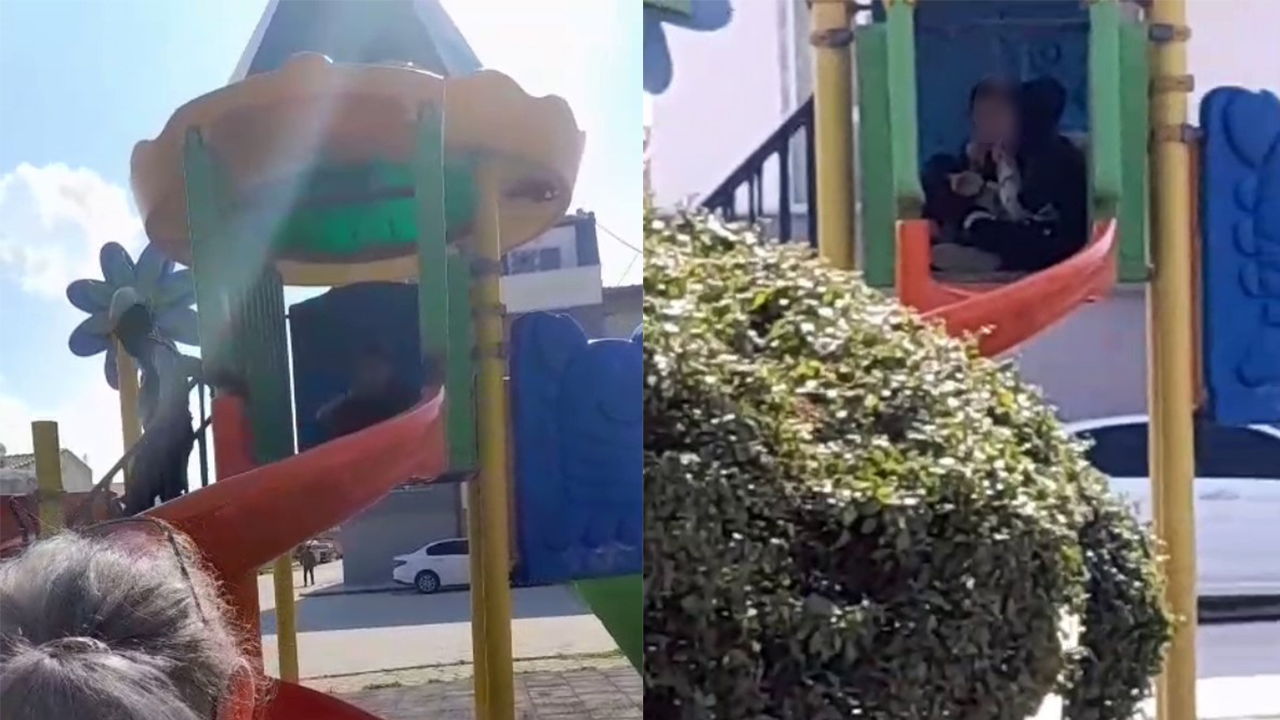 Olay, Yeşiltepe Muhtarlığının önündeki parkta meydana geldi. 2 çocuk, parkın içerisindeki kaydırağın gövdesine oturarak sigara içti. Durumu fark eden Yeşiltepe Muhtarı Meryem Kuş Açıkgöz, çocukların yanına giderek, "Ne yapıyorsunuz siz" diye sordu. Panik yaşayan çocuklar ise kaydıraktan aşağıya indi. Çocuklardan biri muhtarın, "Kaç yaşındasınız siz" sorusuna, "18" diyerek cevap verdi. Koşarak uzaklaşan çocuklar cep telefonu kamerası ile kayıt altına alındı.