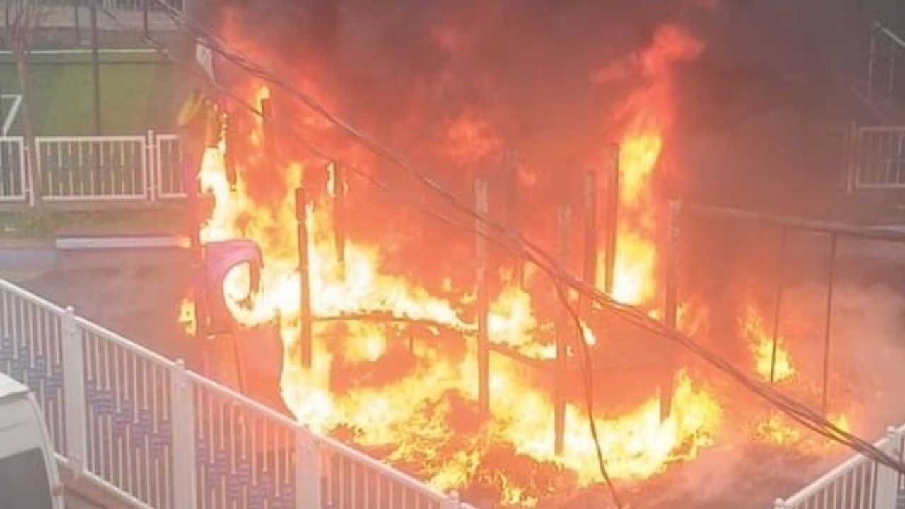 Olay, Pendik Kavakpınar Mahallesi'nde bulunan Şehit Burak Güneş Parkı'nda saat 18.00 sıralarında meydana geldi. Henüz bilinmeyen bir nedenle çıkan yangında çocuk oyun grupları alev alev yandı.