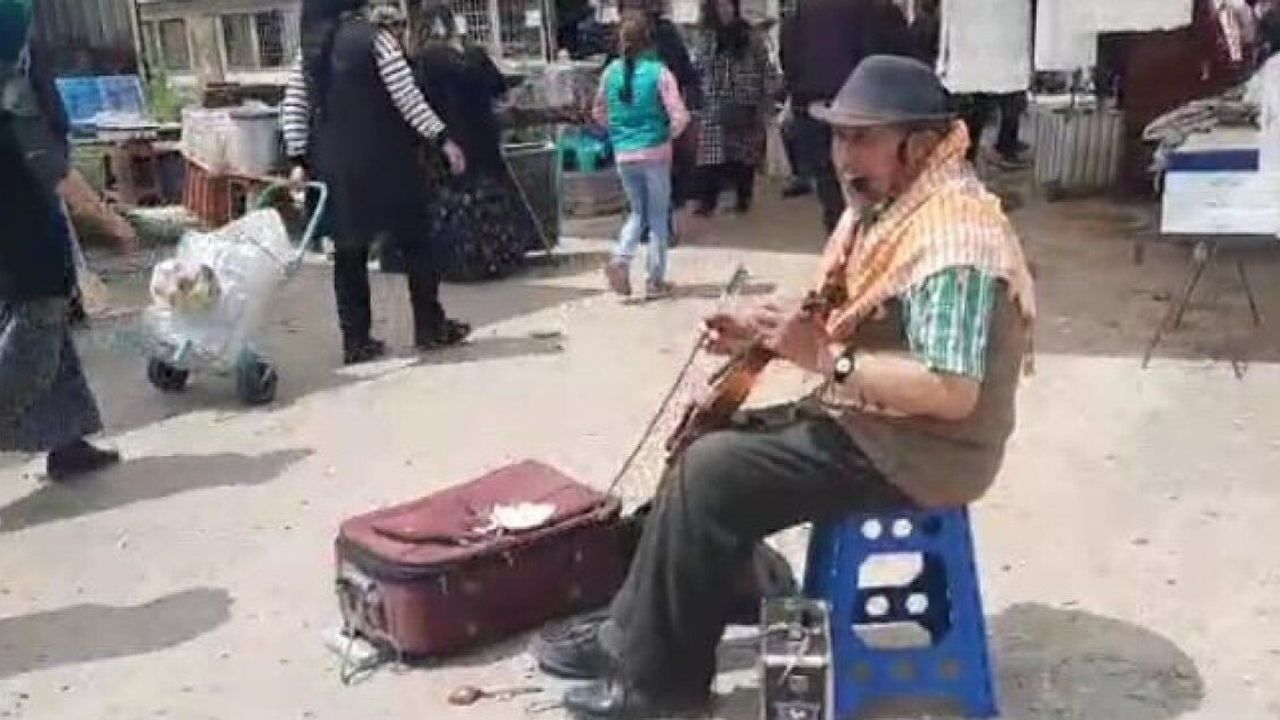 Afyonkarahisar'ın Dinar ilçesindeki yaşayan 66 yaşındaki adam geçimini sokak müzisyenliği yaparak sağlıyor.
