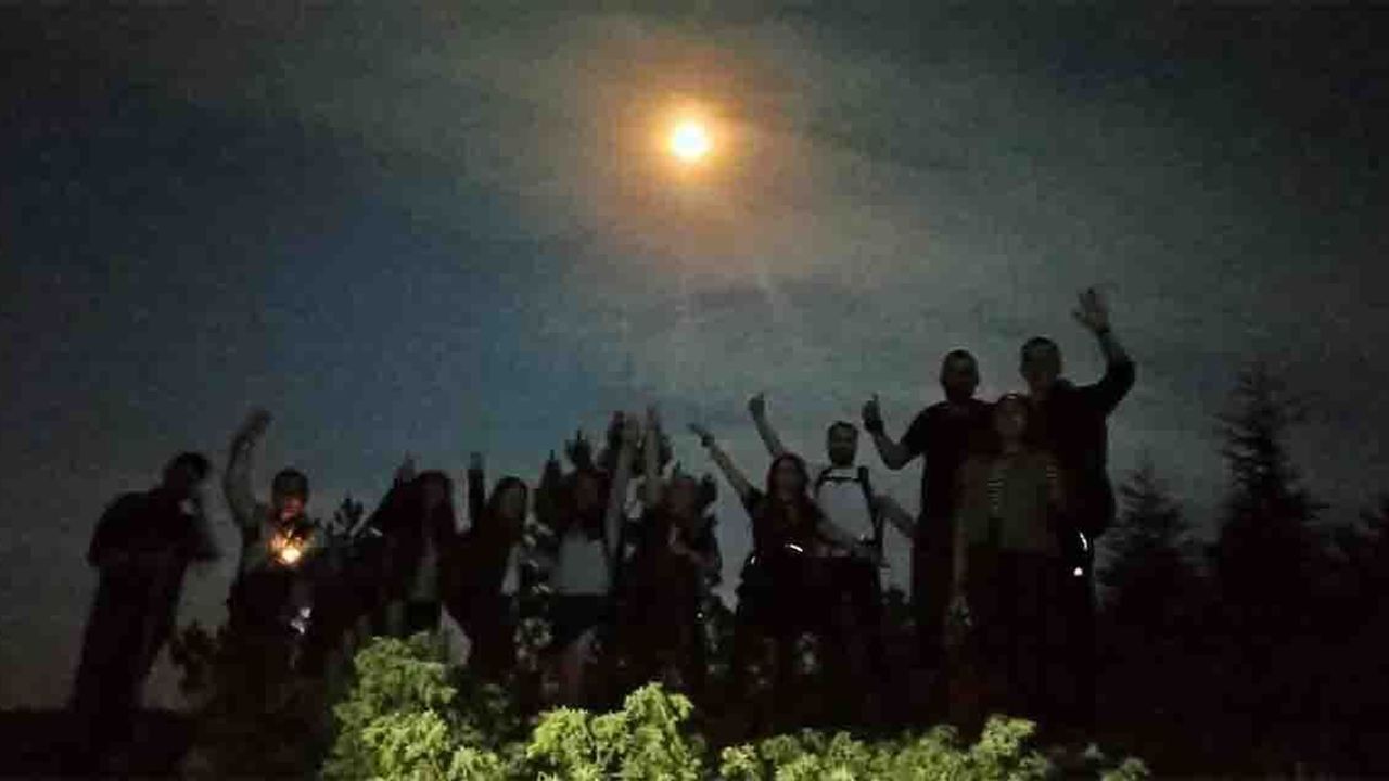 Eskişehirli doğa tutkunları Kent Ormanı'nda gece yürüyüşüne çıktı. 13 kişilik arkadaş grubu akşamüzeri başladıkları yürüyüşlerine hava karardıktan sonra dolunayın ışığında devam etti. Oldukça keyifli geçen yürüyüşte, doğa tutkunları serin havanın ve temiz havanın tadını çıkardı. Toplamda 7 kilometre patika yol kat eden grup, ışıkları sayesinde gördükleri çöpleri de toplamayı ihmal etmedi.