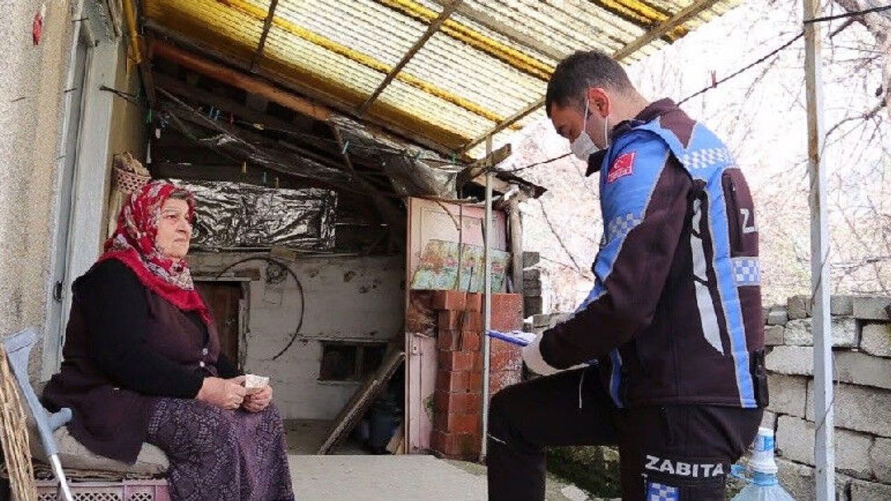 Sivrihisar ilçesinde, ihtiyaçlarını karşılayan zabıta ekiplerine kısıtlı imkanlarına rağmen bahçesinde bulunan meyvelerden yemeye çağıran bir teyze gönüllere taht kurdu.