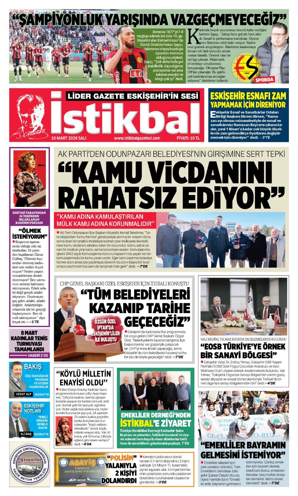 İstikbal Gazetesi 10 Mart 2026 Manşeti