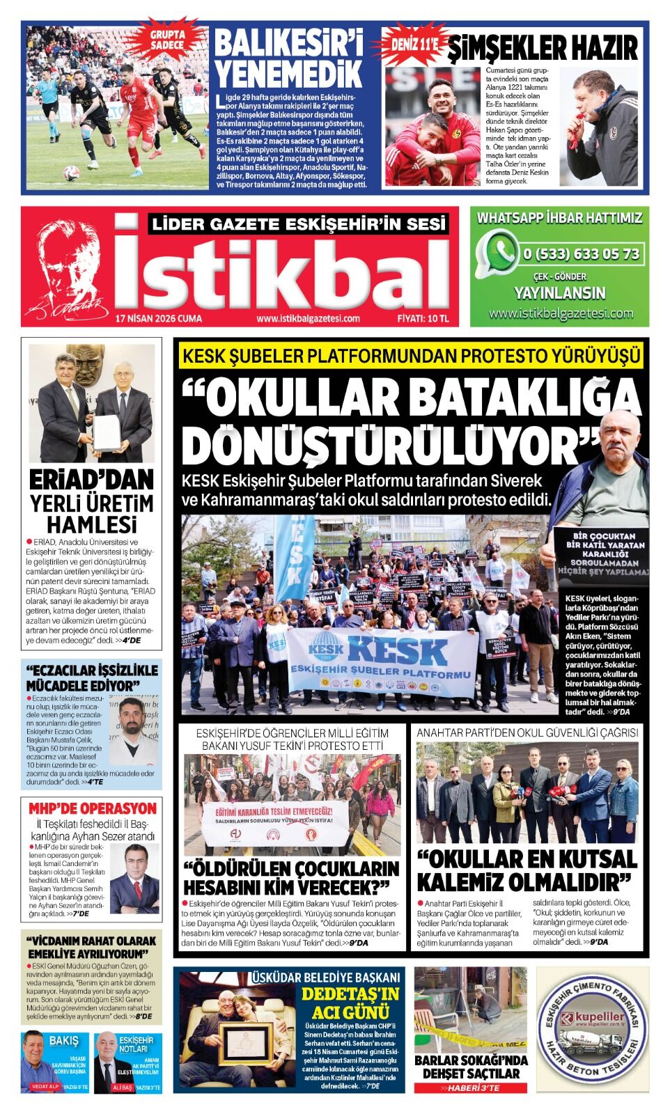 İstikbal Gazetesi 17 Nisan 2026 Manşeti