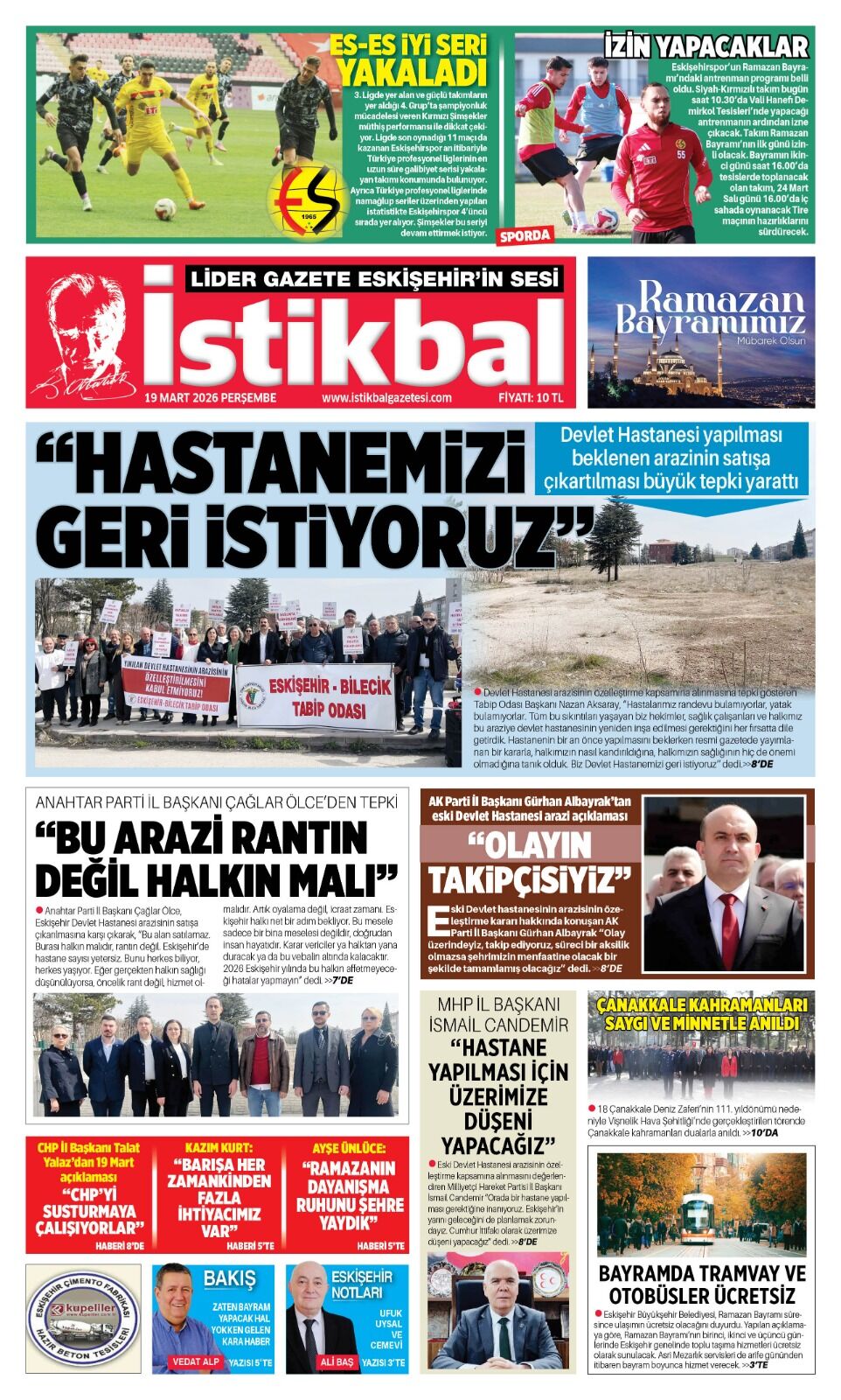 İstikbal Gazetesi 19 Mart 2026 Manşeti