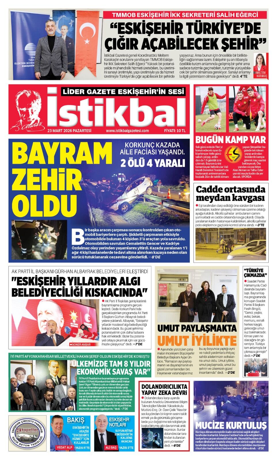 İstikbal Gazetesi 23 Mart 2026 Manşeti
