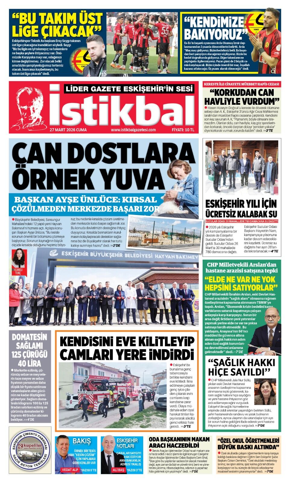 İstikbal Gazetesi 27 Mart 2026 Manşeti