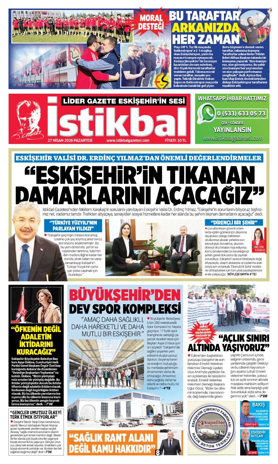 İstikbal Gazetesi 27 Nisan 2026 Manşeti