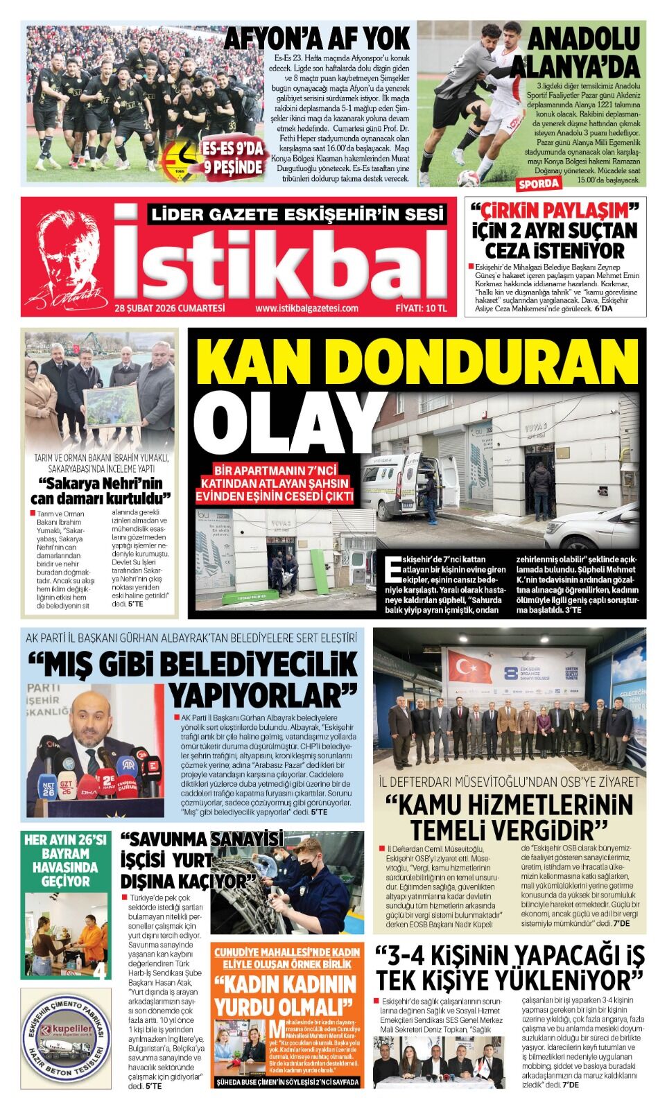 İstikbal Gazetesi 28 Şubat 2026 Manşeti