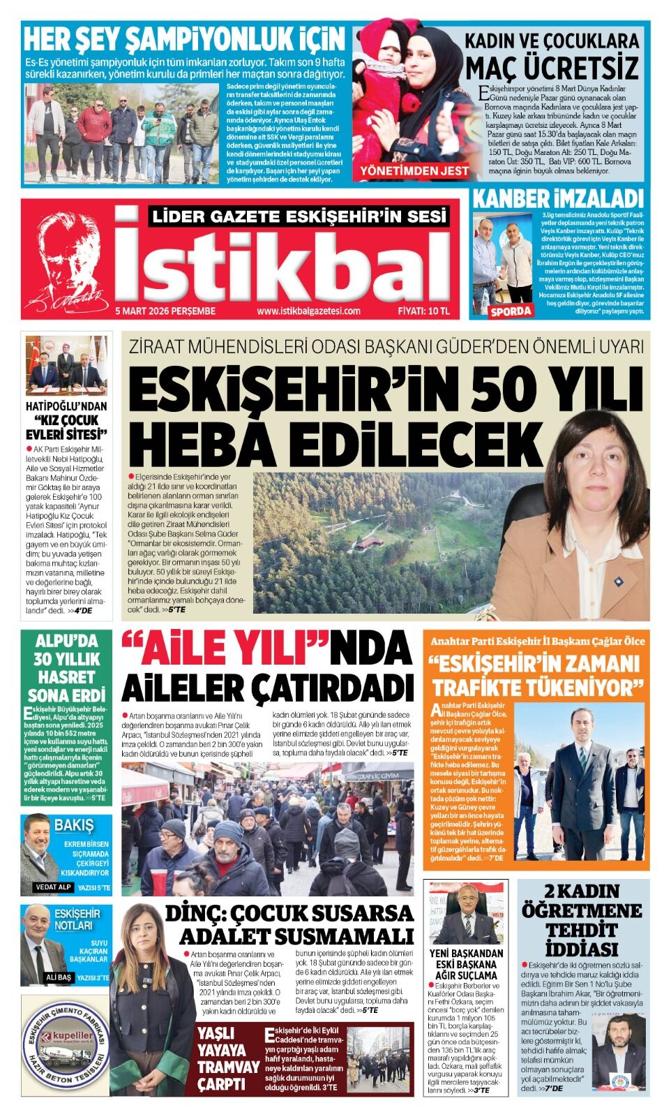 İstikbal Gazetesi 5 Mart 2026 Manşeti