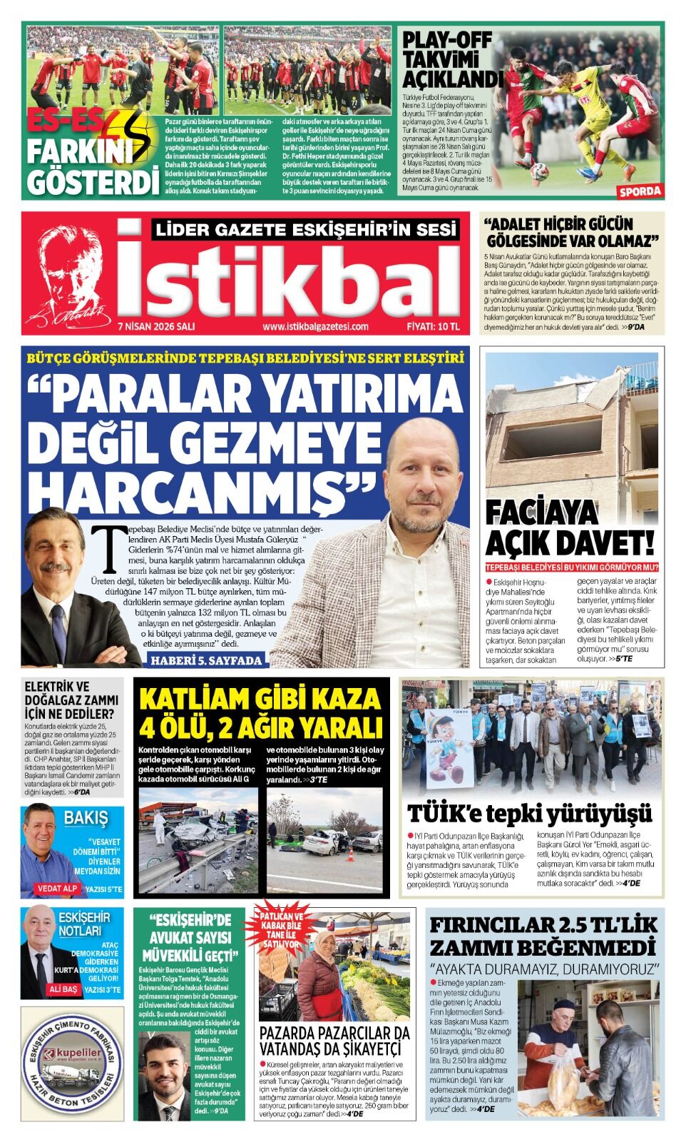 İstikbal Gazetesi 7 Nisan 2026 Manşeti
