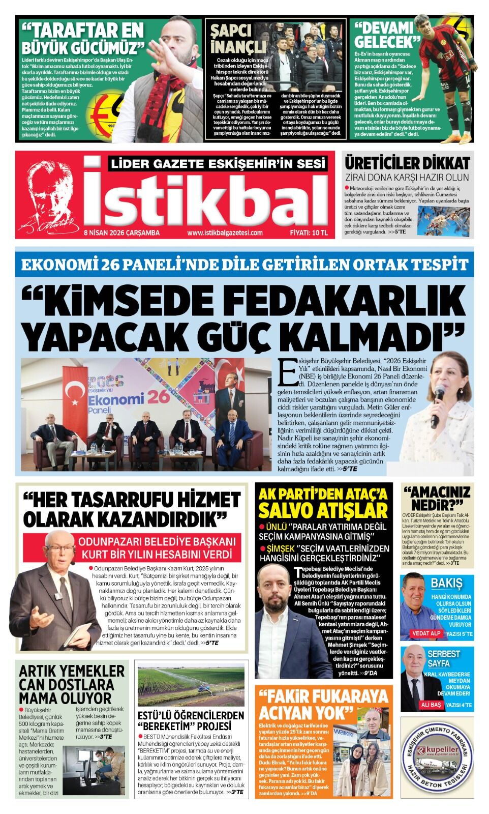 İstikbal Gazetesi 8 Nisan 2026 Manşeti