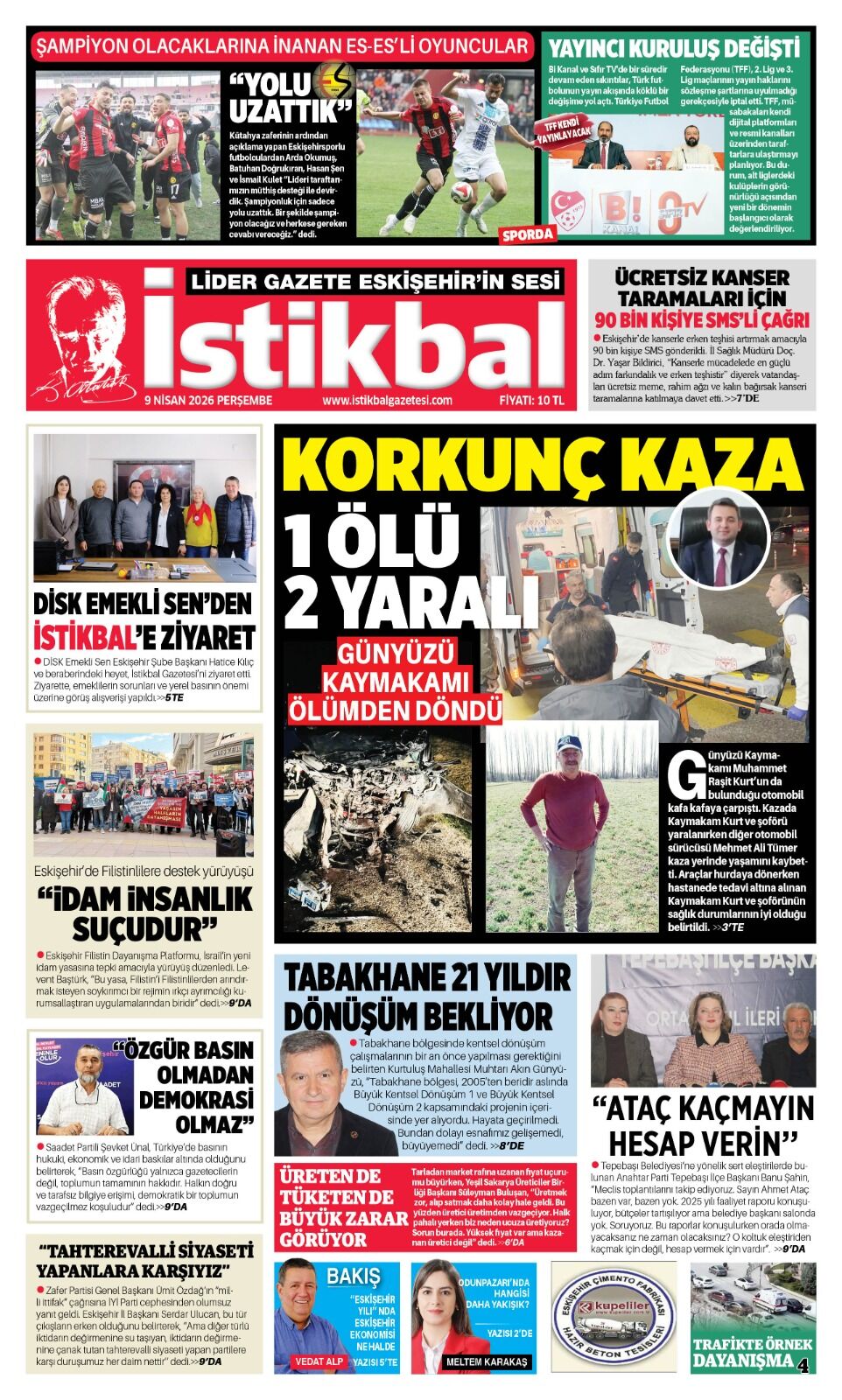 İstikbal Gazetesi 9 Nisan 2026 Manşeti