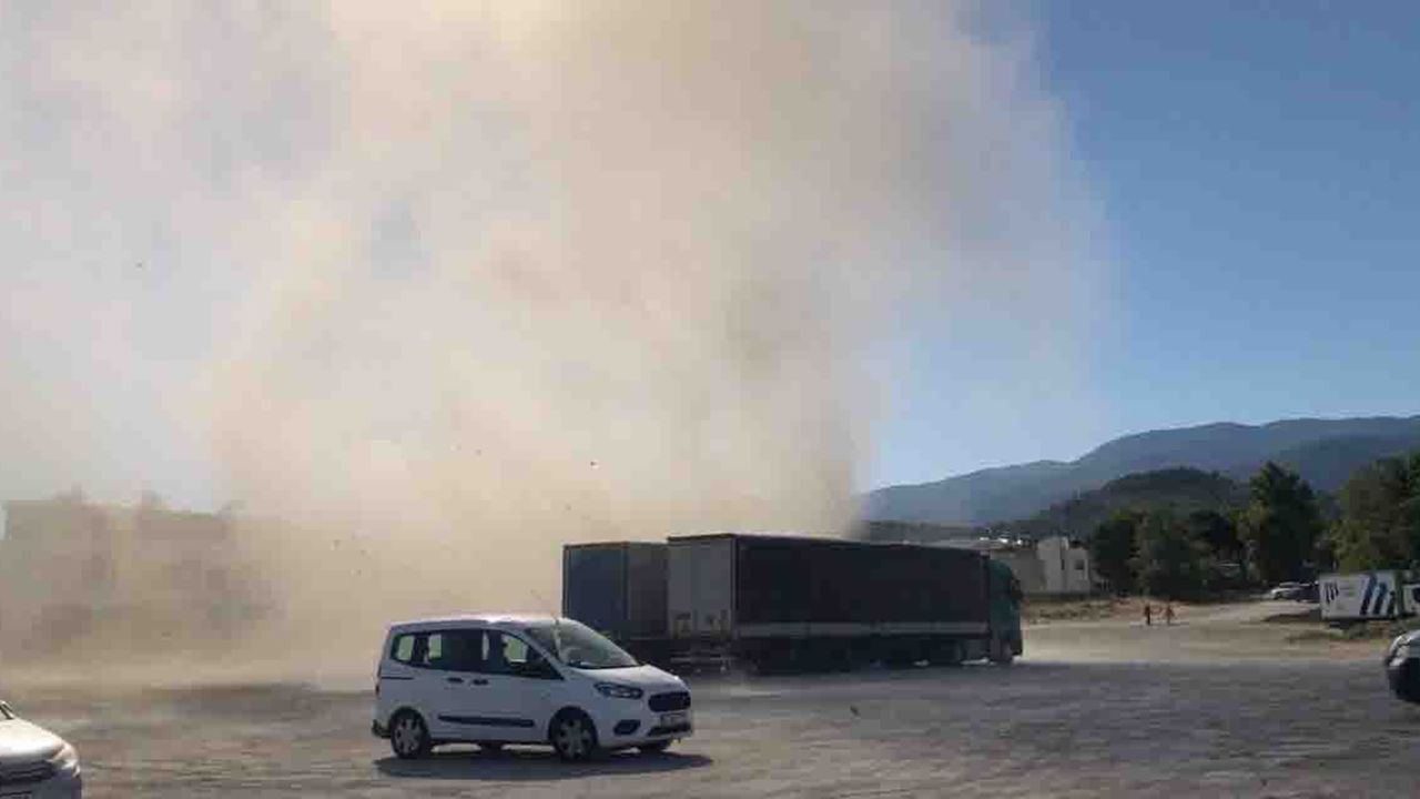 Edinilen bilgiye göre, Güre Mahallesi eski orman deposu mevkisi tır ve karavan park alanında bir anda oluşan hortum önüne ne kattıysa uçurdu.