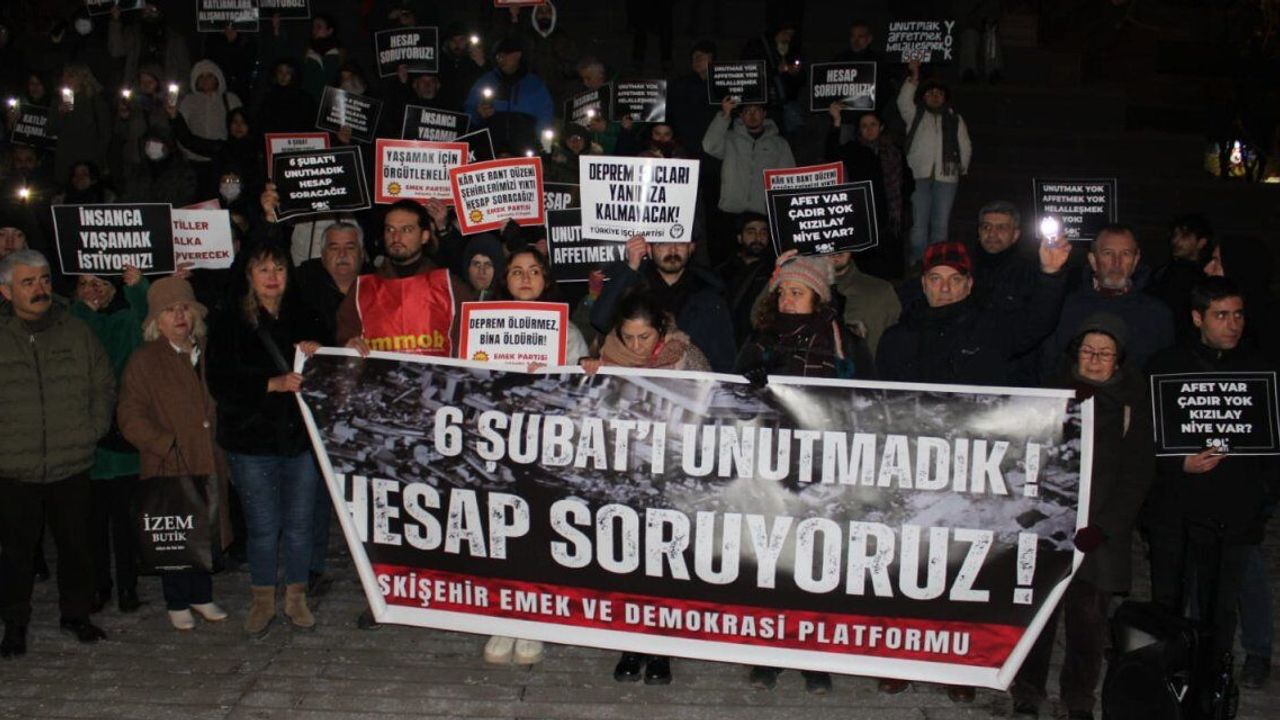 Deprem doğal bir afettir ama felakete dönüşmesi insan eliyle olur. Bu depremler, Hükümet ve devlet yöneticileri, bilim insanlarının ve meslek örgütlerinin uyarılarına rağmen tedbir almak yerine rant düzenini büyütmüştür. Kamusal ve hukuki denetim yok sayılarak kamu kaynakları rant aracına dönüştürüldü. Halen insanlar sağlıksız koşullarda konteyner kentlerde yaşam mücadelesi veriyor. Eğitim ve sağlık hizmetlerine erişim yetersiz, halk yoksullukla boğuşuyor. Kızılay’ın çadır satışı, arama kurtarma ekiplerinin engellenmesi, internet kısıtlamaları, iletişim sisteminin çökmesi, toplanan vergilerin şeffaf şekilde açıklanmaması gibi pek çok olayı unutmadık, unutmuyoruz. Asrın felaketine sebep olanları hesap vermeye davet ediyoruz" diye konuştu.
