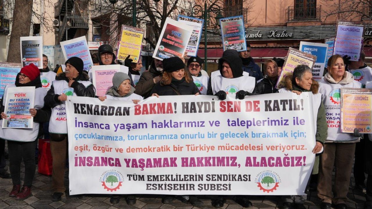 TBMM’de milletvekilleri emekli maaşlarının artırılması için nöbet tutuyor. Eskişehir’de Tüm Emeklilerin Sendikası Eskişehir Şubesi de nöbete destek eylemlerini sürdürüyor. Şehrin farklı bölgelerinde eylemlerini gerçekleştiren emekliler bu kez de Hamamyolu Caddesi’nde bir araya geldi. Haklarını alıncaya kadar eylemlerine devam edeceklerini vurgu yapan emekliler, adaletli gelir dağılımı taleplerinin altını çizdi. Eylemde Tüm Emeklilerin Sendikası Eskişehir ŞubesiÖrgütlenme SekreteriAlimYıldızkan, açıklamalarda bulundu. Yıldızkan, “Emekli aylıklarının derhal iki katına çıkarılıp, ardından yoksulluk sınırı üzerinde olmasını sağlamada bir kaynak sorunu yok. Sürekli yandaşı koruyan ve kollayan ekonomik politikaları sonucu, pastayı bölüşüm engeli var. Saray iktidarı, yine bir orta oyunu sergiliyor. Aylık maaş ve ücretlerde bir artış yok. Sadece yalancı TÜİK'in enflasyonu kadar fark ödeniyor. Bizlere yine sefalet içinde bir yaşam dayatılıyor.“Enflasyonu düşürüyoruz" safsatasıyla fatura tüm emekçi kesimlerle ve başta biz emeklilere kesiliyor. Yine perişan kesim, emekliler olacak. Buda; Emekli aylıklarının dibe doğru hızla gidişin, devam edeceğini gösteriyor.Adaletli gelir dağılımı düzenlemesinde, mesele kaynak sorunu değil. Emekli maaşları, bilerek ve sistematik olarak düşürülüyor.AKPartili Abdullah Güler'in, sadece en düşük emekli maaşı 20 bin lira olacağını açıklaması, bunun açık ve net kanıtıdır. Tüm emeklileri kapsayan bir düzenleme yok. Buda adaletsiz gelir dağılımını, emeklilerin aleyhine daha da bozacaktır” ifadelerini kullandı.