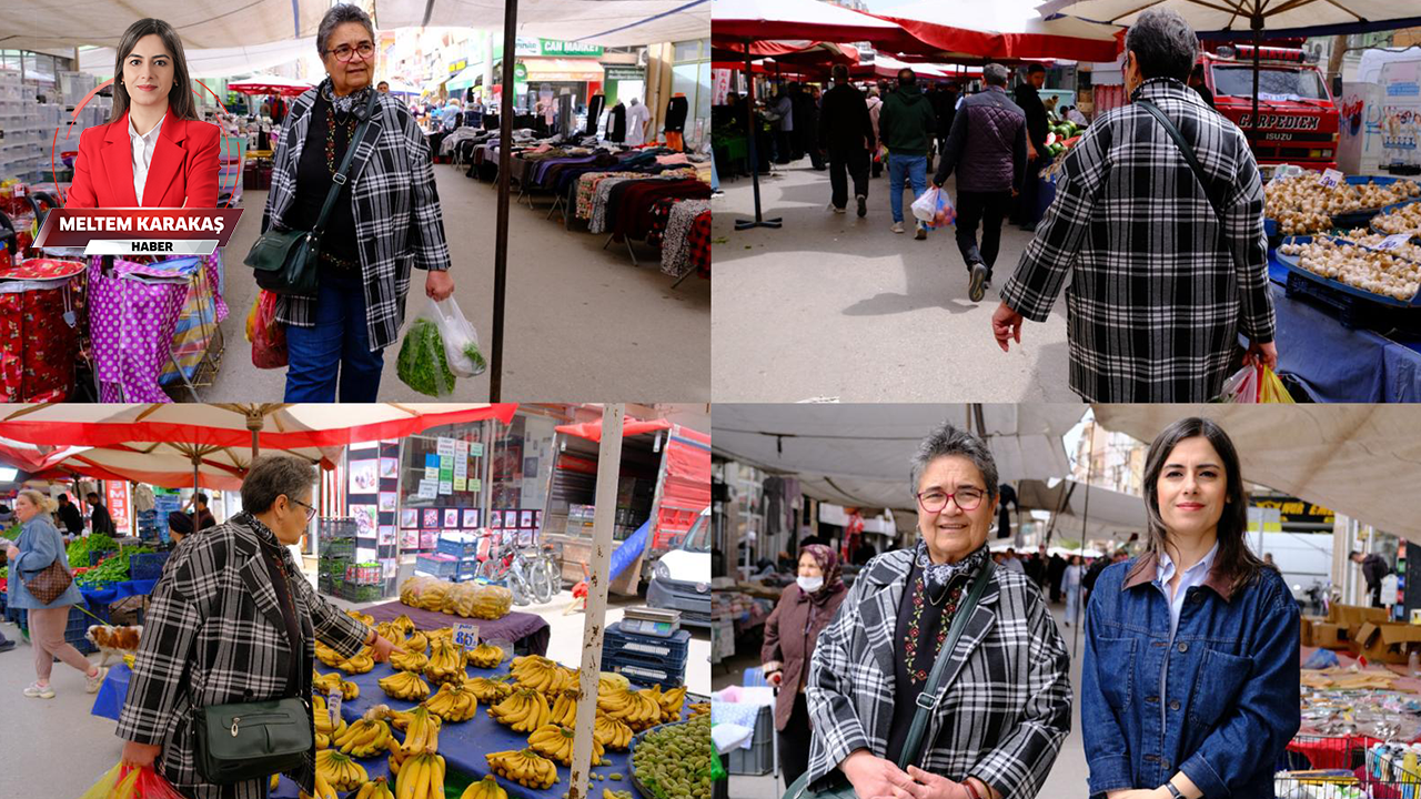20 yıl tekstilde çalıştığını fakat günün sonunda eline geçen emekli aylığının 22 bin lira olduğunu söyleyen Yılmaz, pazarda gezerken birçok şeye bakıp geçtiğini söyledi. En düşük emekli aylığıyla her hafta meyve almanın imkansız olduğunu belirten Yılmaz, Emekli komşularım da sürekli pazara çıkıyor ama onlar da istediklerini alamıyor. Bir araya geldiğimizde konu hep ekonomiye, maaşa geliyor. Emekli de rahat yaşamak ister. Para derdi olmadan istediğimizi almak isteriz ama olmuyor. Her şeyden yarım kilo alıyoruz. Mesela ben 20 yıl çalıştım. 2005’te emekli oldum. Elime geçen 22 bin lira. Emekli böyle bakıp geçiyor. Doğal gaza, elektriğe yeni zam geldi. Emekli maaşı eridi. Yazın insanın canı her şey istiyor. Ama almıyorsun. İlerisini düşünüyorsun. Kirada olanlar için daha zor. Geçim çok zor. Her hafta 500-600 lira nasıl olacak? Meyve çok pahalı, kivi çok pahalı alamaz emekli” diye konuştu.