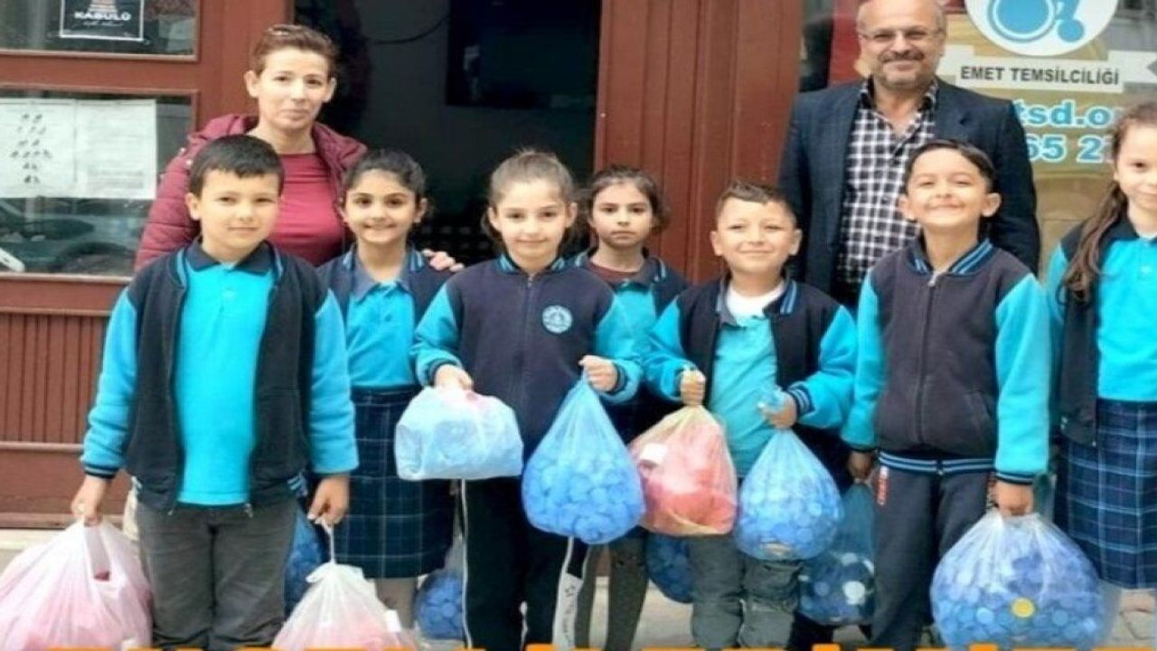Türkiye Sakatlar Derneği Emet Temsilciliği'nin "Mavi kapak toplama kampanyası'na Emet 3 Eylül İlkokulu öğrencileri destek verdi.