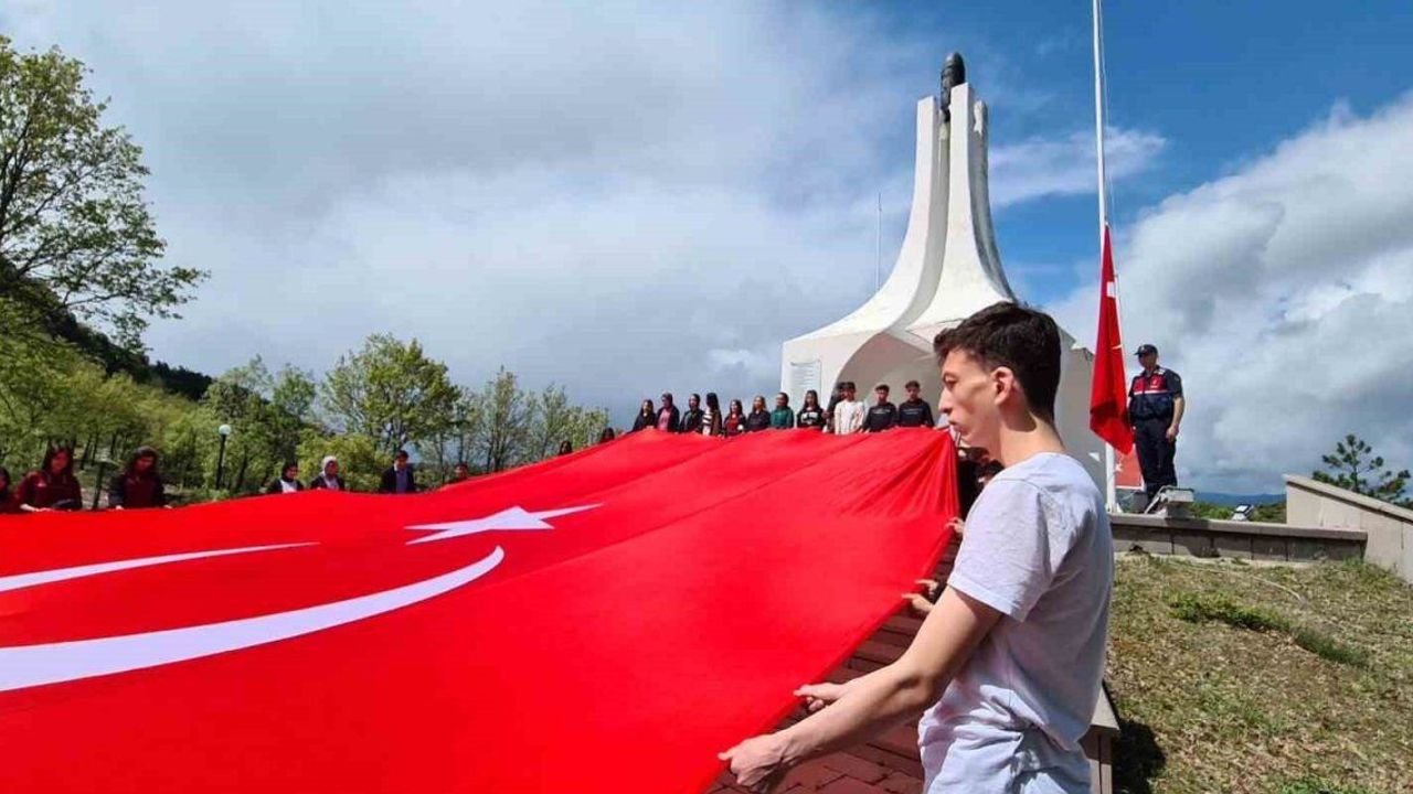 Kaymakam Hasan Çiçek, Belediye Başkanı Hüseyin Doğan, İlçe Milli Eğitim Müdürü Bilal Şen, İlçe Gençlik Hizmetleri ve Spor Müdürü Umut Işık, öğrenciler ile birlikte Cevizdere şehitliğine uzanan yolda dev bayrakla yürüyüş gerçekleştirdiler.
