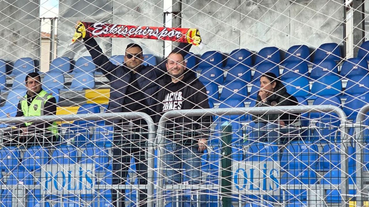 Anadolu Spor Faaliyetleri AŞ'ye Kütahya'da Eskişehirspor taraflarından destek. Deplasman tribününde Eskişehirspor atkısı açan iki taraftarımız Eskişehir temsilcisini yalnız bırakmadı.