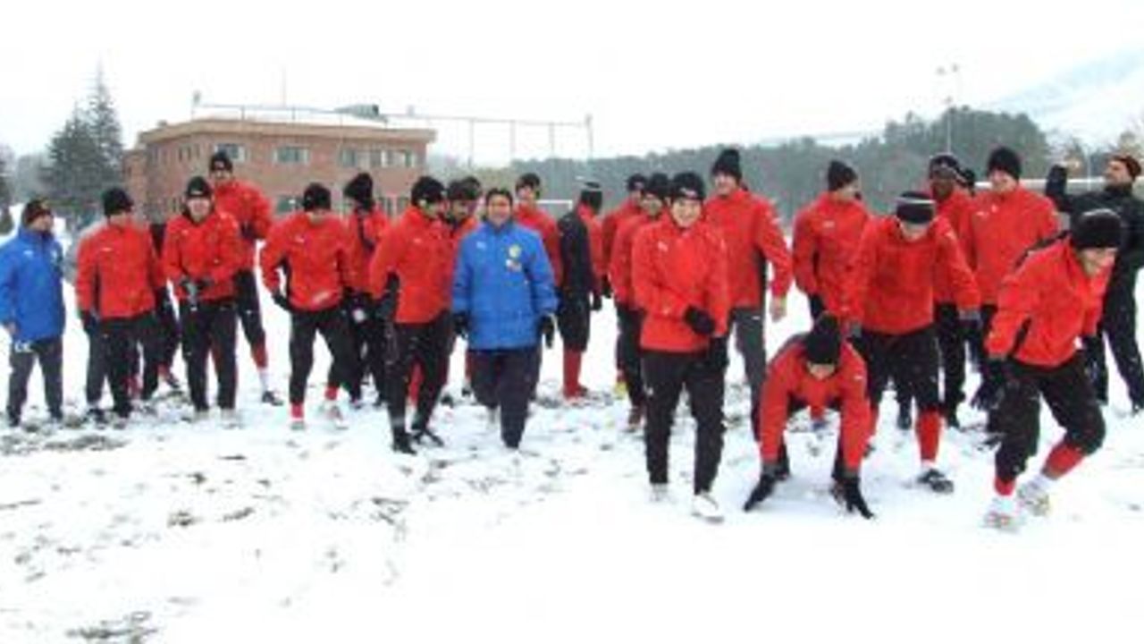 İstanbul BŞ maçının hazırlıklarını neşe içinde sürdüren Eskişehirspor kar kış dinlemiyor.