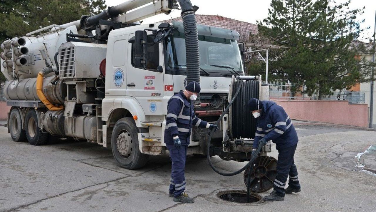 Kombine kanal temizleme araçlarıyla yüksek basınçlı su jetleri kullanarak tıkanıklıkları açan ve vidanjörlerle vakumlayarak tahliye işlemlerini gerçekleştiren ESKİ ekipleri, tıkanıklıklara neden olan suda erimeyen atıkların giderlere atılmaması için vatandaşlara duyarlılık çağrısında bulunuyor.