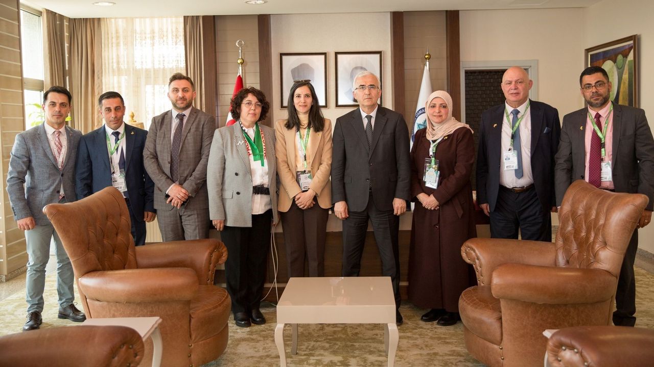 Rektör Prof. Dr. Kamil Çolak, etkinliğe katılmak üzere ESOGÜ'ye gelen Filistin Hebron Üniversitesi ekibini makamında ağırlarken, ziyarette uluslararası ilişkilerden sorumlu Rektör Yardımcısı Prof. Dr. Emine Gümüşsoy, ESOGÜ Uluslararası İlişkiler Birimi Koordinatörü Doç. Dr. Mahmut Sami İşlek ve Erasmus ICM program sorumlusu Dr. Emrah Orakcıoğlu da bulundu. Toplantıda Filistin'den gelen konuklar ile akademik işbirliklerinin daha da ileriye götürülmesi için atılacak adımlar görüşülürken, Rektör Prof. Dr. Kamil Çolak ziyaretten duyduğu memnuniyeti ve Filistin'e desteklerini dile getirdi. Hebron Üniversitesi Uluslararası İlişkiler Birimi Koordinatörü Dr. Ahmad Ghayyada'nin liderlik ettiği ekip ise ESOGÜ ile derin bir ortaklık kurulduğunu, bu etkinliğin Filistin-Türkiye dostluğuna kıymetli katkılarda bulunduğunu ifade etti. Dr. Ahmad Ghayyada aynı zamanda işgalden dolayı Filistin'de yaşanan zorluklar ve seyahat sırasındaki sıkıntılarını da dile getirdi. Toplantı ikramlar ve hediye takdimleri ile sona erdi.