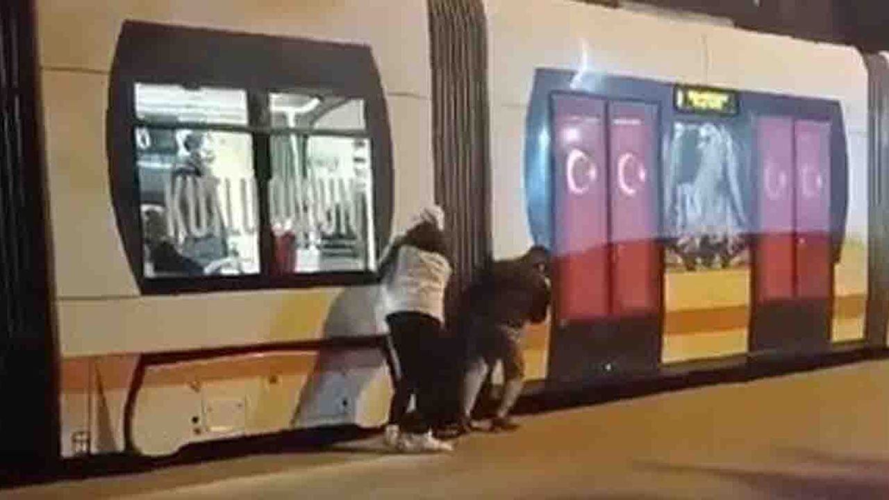 Çevrede bulunan iki genç ise ilerlemekte güçlük çeken tramvayı ittirmeye başladı. Yoldan geçen bir vatandaş tarafından bu anlar cep telefonu kamerası ile kaydedildi.