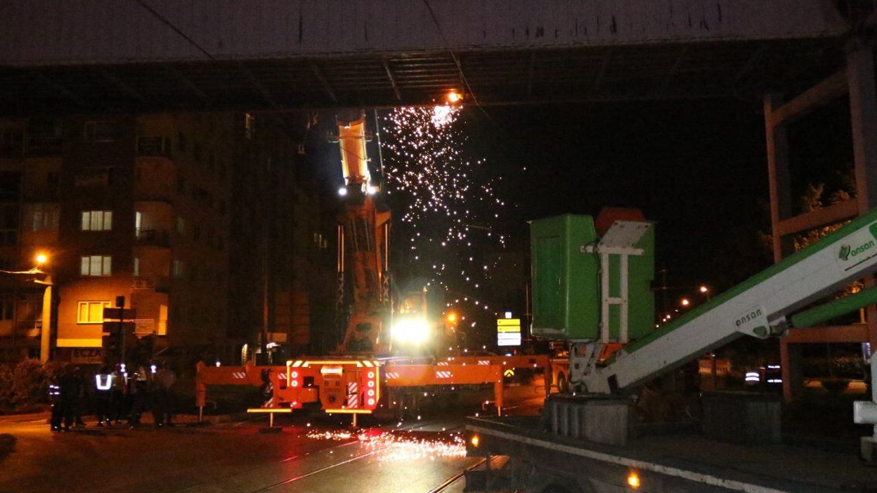 Çalışmaları yerinde inceleyen ve bilgi veren Odunpazarı Belediye Başkan Yardımcısı Evren Olcay, “Uzun yıllardır Eskişehir Adliye Sarayı Kavşağı'mızda bulunan yaya üst geçidimiz artık yıllar vermiş olduğu yorgunluk ve kavşaktaki sinyalizasyon sistemi sebebiyle çok kullanışlı değildi ve tehlike arz eder hale gelmişti. Biz de Başkanımız Kazım Kurt'un talimatlarıyla hafta boyunca gece saat 1'den 5'e kadar Büyükşehir Belediyesi'ndeki yetkililerin de desteğiyle tramvay hattımızı kesiyoruz ve buradaki yaya üst geçidimizi kaldırıyoruz. Yaya üst geçidimiz kalktıktan sonra şuan da aşağıdaki sinyalizasyon ve tarik ışıkları ve tramvayla beraber trafiğin akışı yayalara da ayrıca zaman sağlıyor. Yaya trafiği yer üzerinden devam edecek. Planlanan 4 gün sürmesi ama şuan da takvimin biraz önünde devam ediyoruz. İnşallah başka bir sisteme zarar vermeden 3 gece de tamamlamayı düşünüyoruz. Şuan da Odunpazarı Belediyesi Fen İşleri, Büyükşehir Belediyesi Ulaşım Daire Başkanlığı, Büyükşehir Belediyesi Estram ve farklı yardımcı kuruluşlarla beraber devam ediyoruz. Yaklaşık 50 kişi çalışıyor şuan da, emniyetin de desteği ile yolu kesiyoruz. Bir an evvel herkes kazasız belasız işi bitirmenin derdinde” dedi.