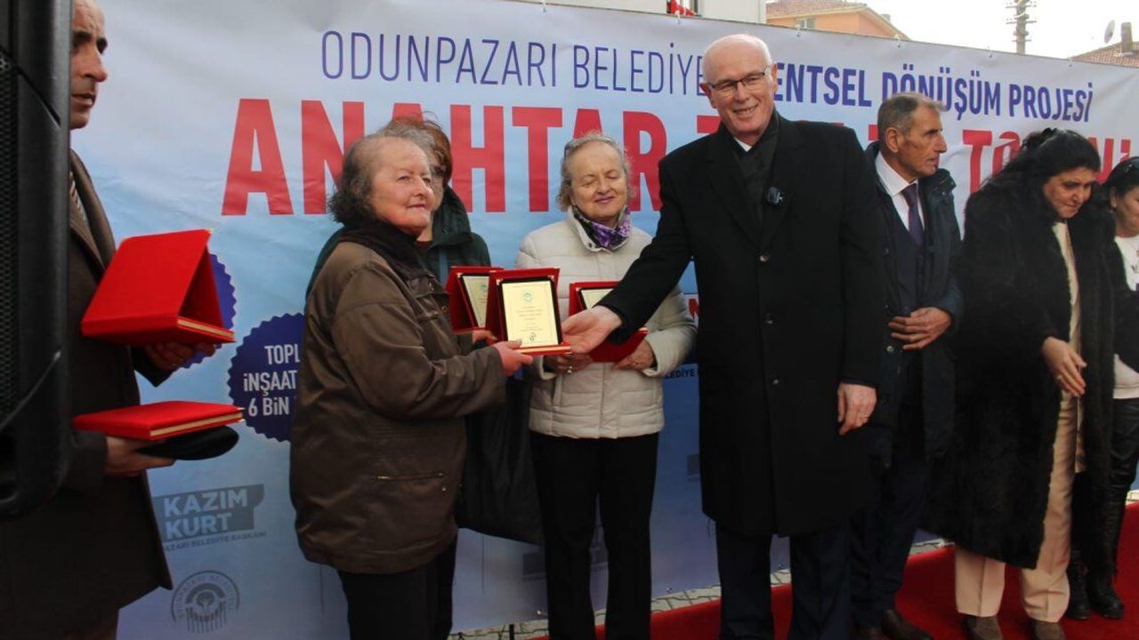 Odunpazarı Belediyesi tarafından Karapınar Mahallesi’nde 3 blok 39 daireden oluşan Kentsel Dönüşüm Projesi’nin anahtar teslim törenine CHP Eskişehir Milletvekili Jale Nur Süllü, Odunpazarı Belediye Başkanı Kazım Kurt, hak sahipleri katıldı.
