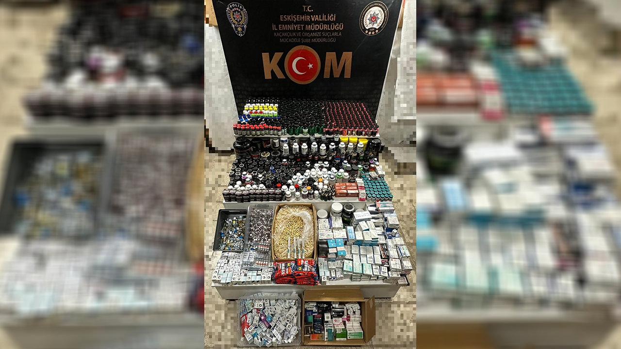 Eskişehir Kaçakçılık ve Organize Suçlarla Mücadele (KOM) Şube Müdürlüğü ekipleri, halk sağlığının korunması ve haksız kazancın engellenmesi amacıyla yurda yasadışı yollarla sokulan, merdiven altı diye tabir edilen yerlerde üretilen kaçak ilaçları ve gıda takviyelerini piyasaya sürmeye çalışan şahıslara yönelik yapılan çalışmalar kapsamında bir iş yerinde arama yaptı.