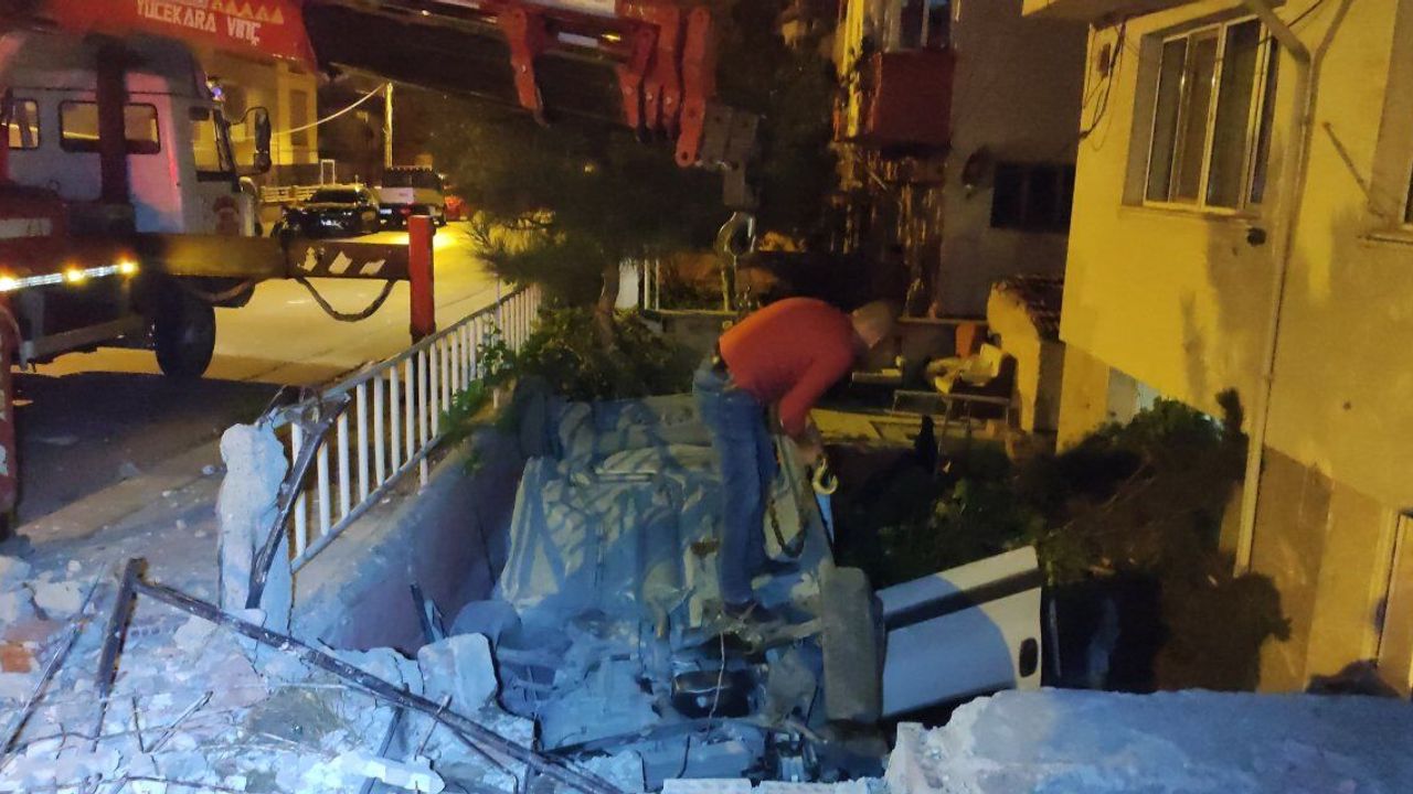 Kaza sonucunda hafif ticari araç kullanılamaz hale gelirken, apartmanda ve bahçesinin çevresinde hasar oluştu. Polis ekipleri, kazayla ilgili soruşturma başlattı.