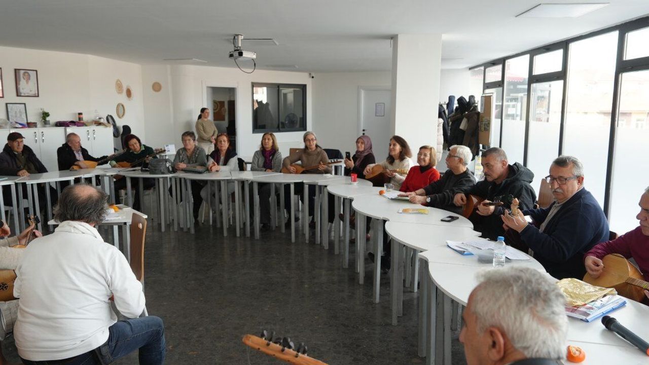 ESMEK Sağlıklı Yaş Alma Atölyesi kurslarından biri olan bağlama eğitimi, katılımcılara hem müzikle buluşma hem de sosyalleşme imkânı sunuyor. Bağlama kursunda bir araya gelen kıdemli vatandaşlar, türküler eşliğinde keyifli dakikalar geçirirken renkli anlar yaşadı.