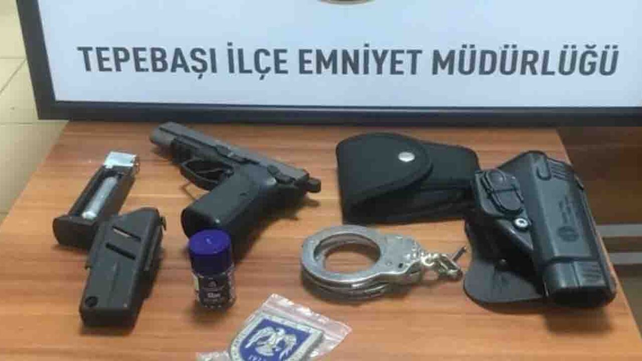 Şahsın yapılan üst aramasında 1 adet havalı tabanca, 1 adet kelepçe ve Hava Kuvvetlerine ait bröve ele geçirildi. Şüphelinin yapılan kimlik sorgulamasında ise "dolandırıcılık" suçundan 7 adet arama kaydının bulunduğu ve 5 ayrı "dolandırıcılık" suçunun da firari şüphelisi olduğu tespit edildi.